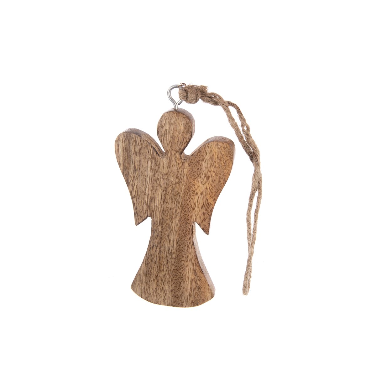 Kód produktu 351873Menší anděl má krásnou texturou mangového dřeva a je doplněn jutovým provazem. Lze jej postavit do interiéru nebo zavěsit, bude z něho stylový kousek do interiéru.
