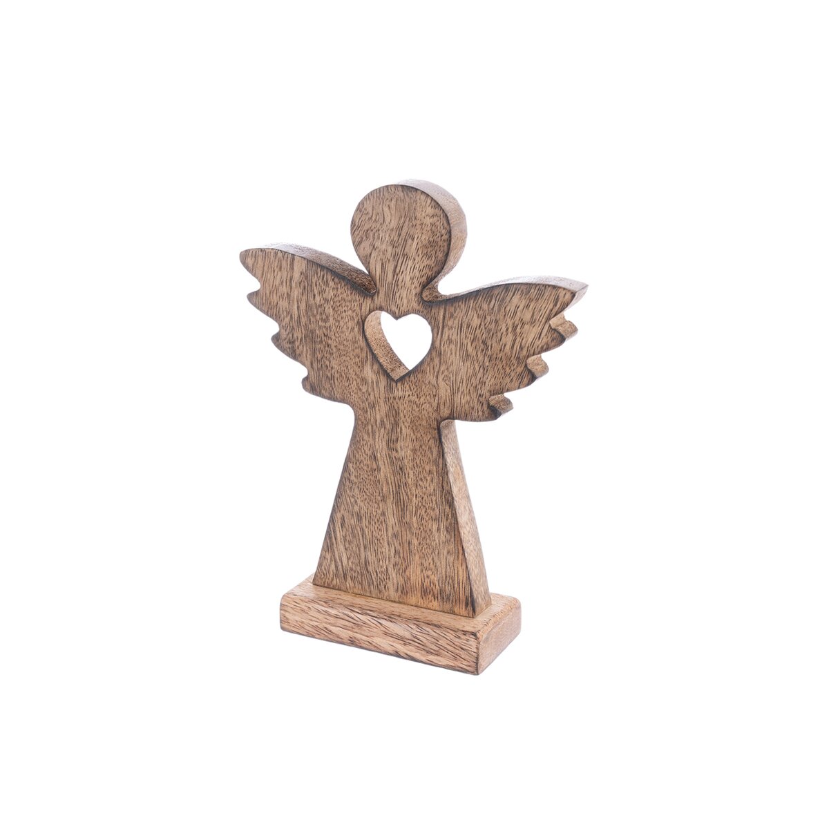 Kód produktu 351882Menší dekorace ANDĚL s krásnou texturou mangového dřeva a otvorem ve tvaru srdce je vhodný jako dárek nebo stylový kousek do interiéru.