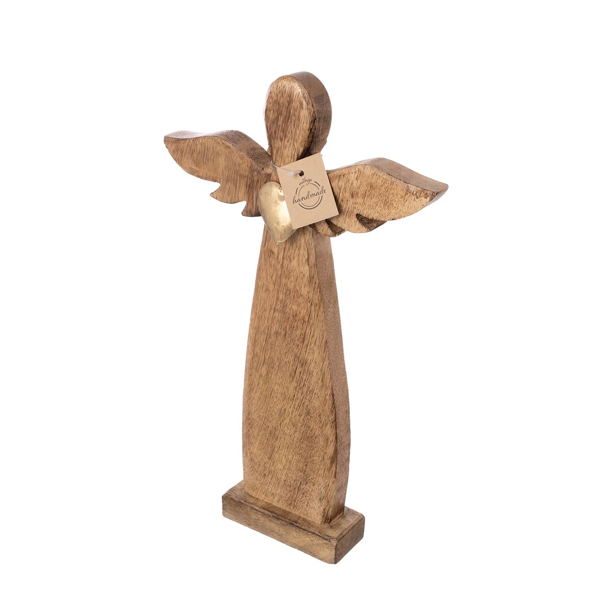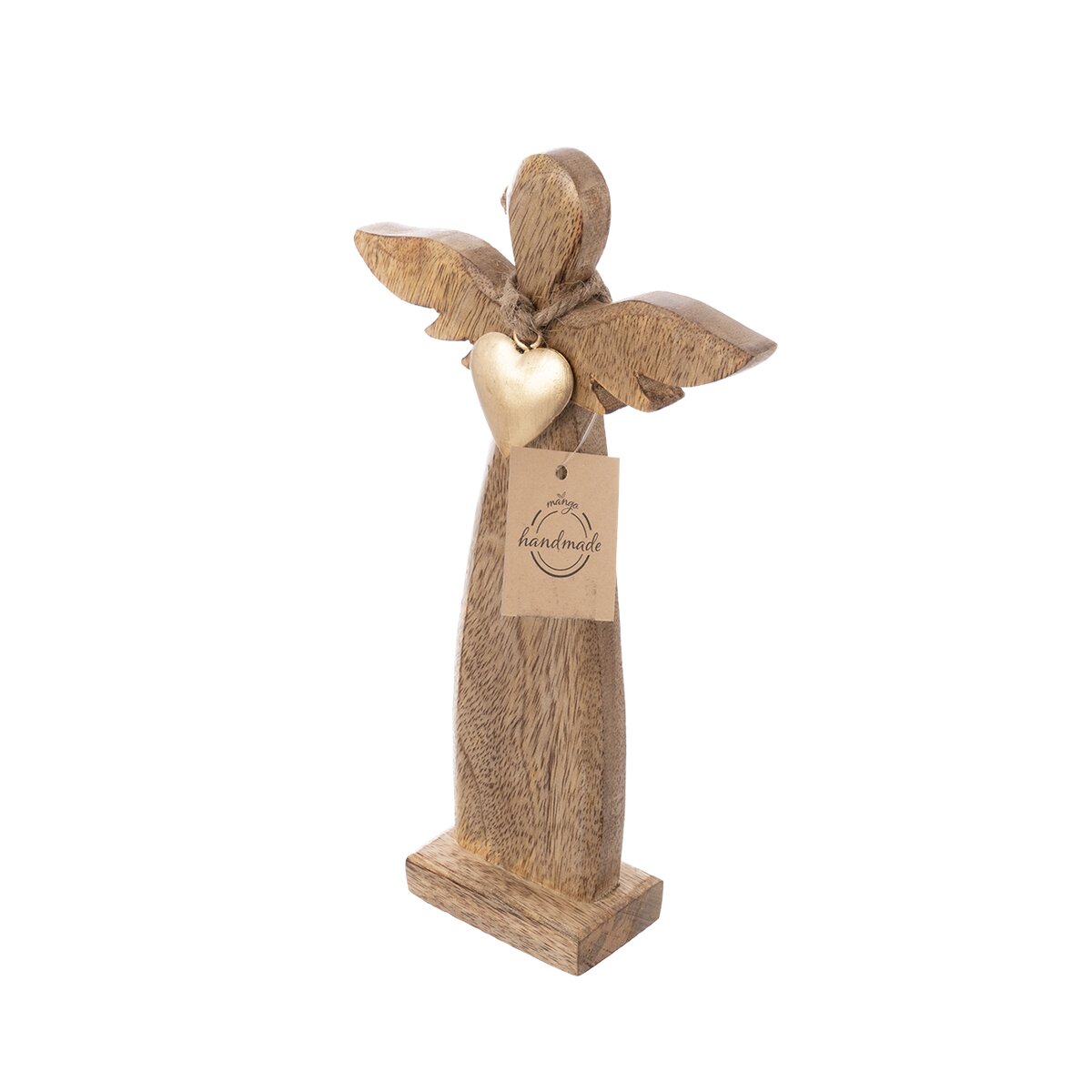 Dekorace ANDĚL s krásnou texturou mangového dřeva je doplněn kovovým srdíčkem ve zlatém odstínu. Ideální jako dárek nebo stylový kousek do interiéru.