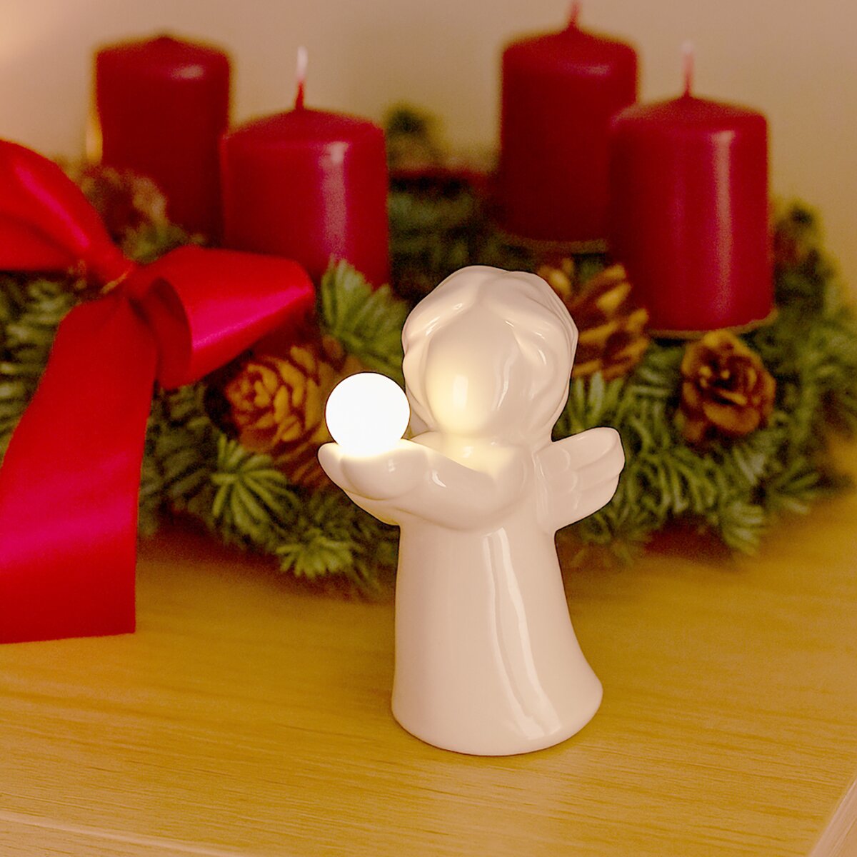 Dekorace porcelánového anděl je jemným a působivým doplňkem, který vynikne v každém interiéru, zejména během vánoční sezóny. Svým decentním osvětlením vytváří příjemnou a klidnou atmosféru, díky níž se váš domov rozzáří teplem a elegancí. Anděl je určen pro vnitřní použití a je vybaven integrovaným LED osvětlením, které zajišťuje úsporný a bezpečný provoz.
