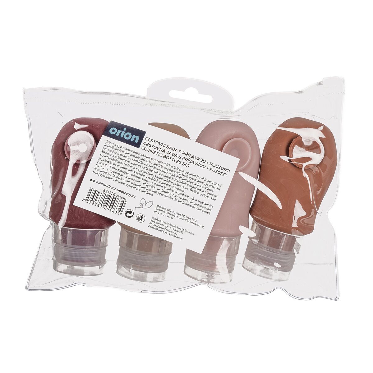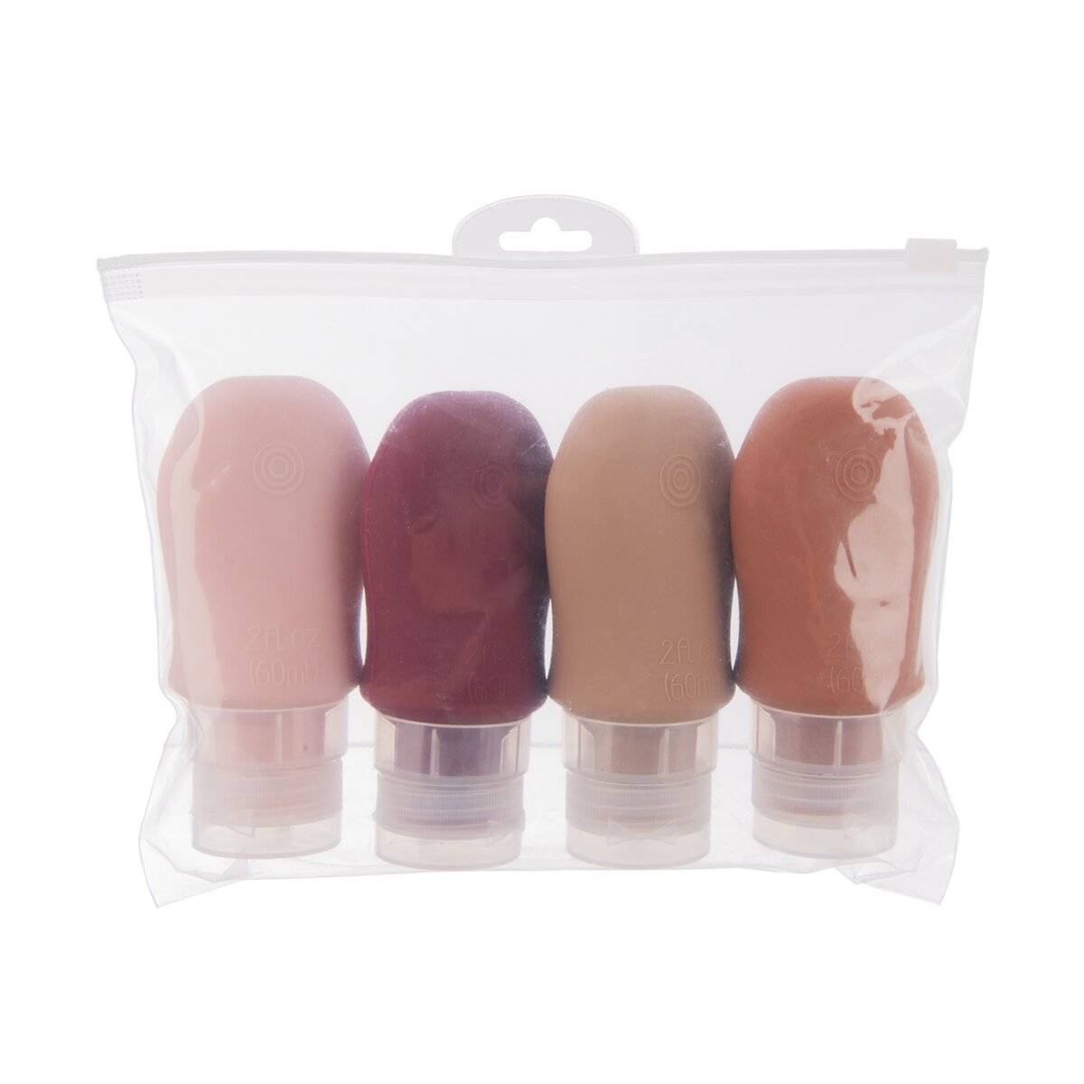 Kód produktu 851326Praktická sada 4 kusů silikonových lahviček s přísavkou a s plastovým odklápěcím víčkem je určena k uložení mycích gelů, šampónů apod., určených na cestování. Mají objem 60 ml a jsou uloženy v uzavíratelném průhledném pouzdře.