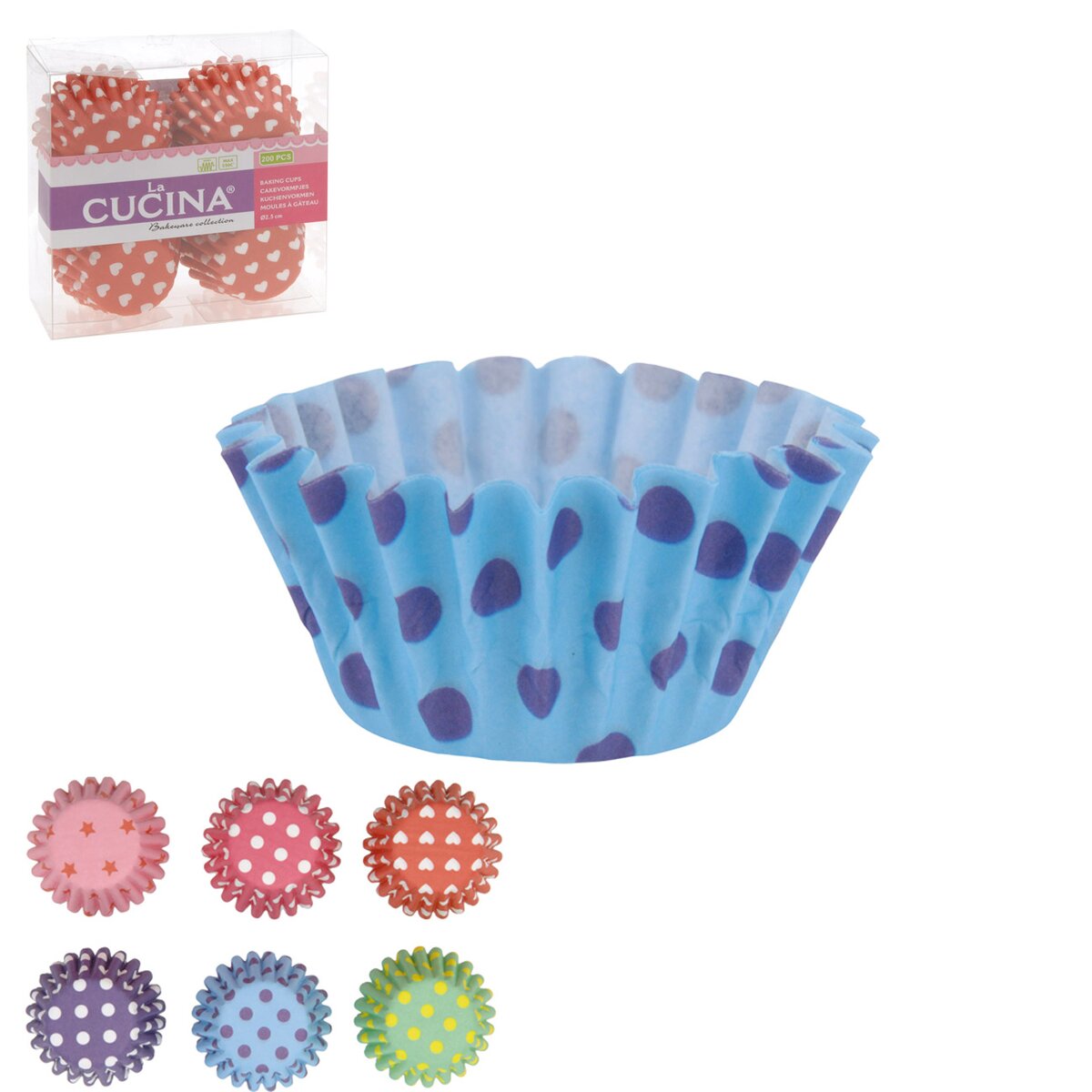 Košíček cukrářský - vynikající pro pečení i servírování nejen sladkých pokrmů, ale také slaných dobrot. Na pečené i nepečené dezerty. Ideální pro cukroví, čokoládové bonbóny, pralinky, mini muffinky a další dobroty. Assort dekorů a barev. Materiál: pečící papír - lze použít do 220 °C. Sada 200 ks. Rozměry: pr. dna 2,5 cm, v. 1,7 cm.