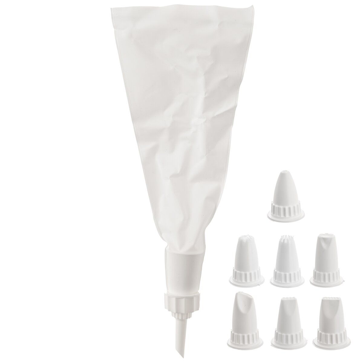 Kód produktu 142256Sada 1 plastového cukrářského sáčku a 8 různých špiček, určených ke zdobení dortů, cukroví krémem či šlehačkou.