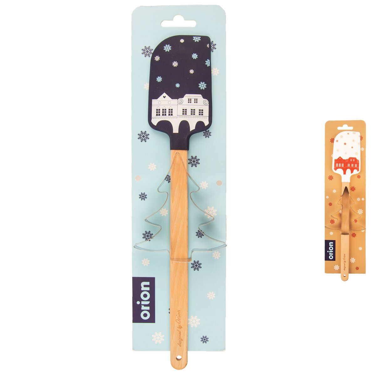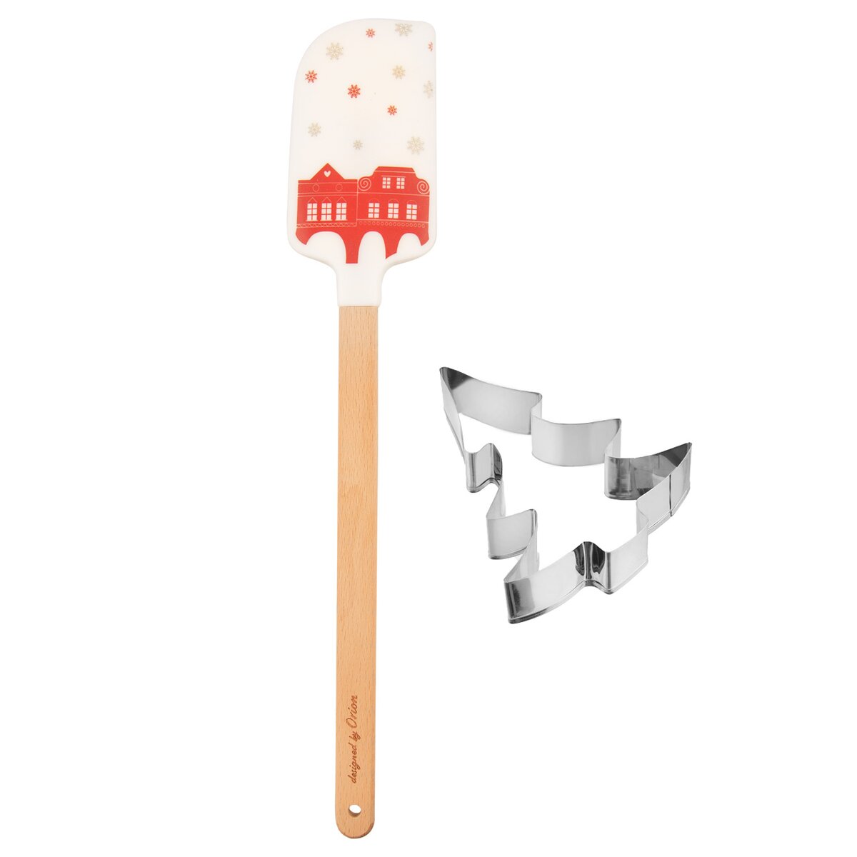 Sada kuchyňské stěrky s vánočním motivem a vykrajovačky může být skvělým dárkem nebo pozorností v době Vánoc. Měkké hrany stěrky dokonale přilnou k nádobě. Dvě barevné varianty. Dárkové balení. Materiál: silikon - lze bez problému použít do teploty -40°C až +120°C, je vhodná prakticky pro všechny druhy potravin - jak vodné, třeba i kyselé, ale také i s obsahem tuku či oleje včetně alkoholických, dřevo, pocínovaný plech. Rozměry: stěrka š. 5 cm, d. 29 cm, vykrajovačka 7x9 cm.
