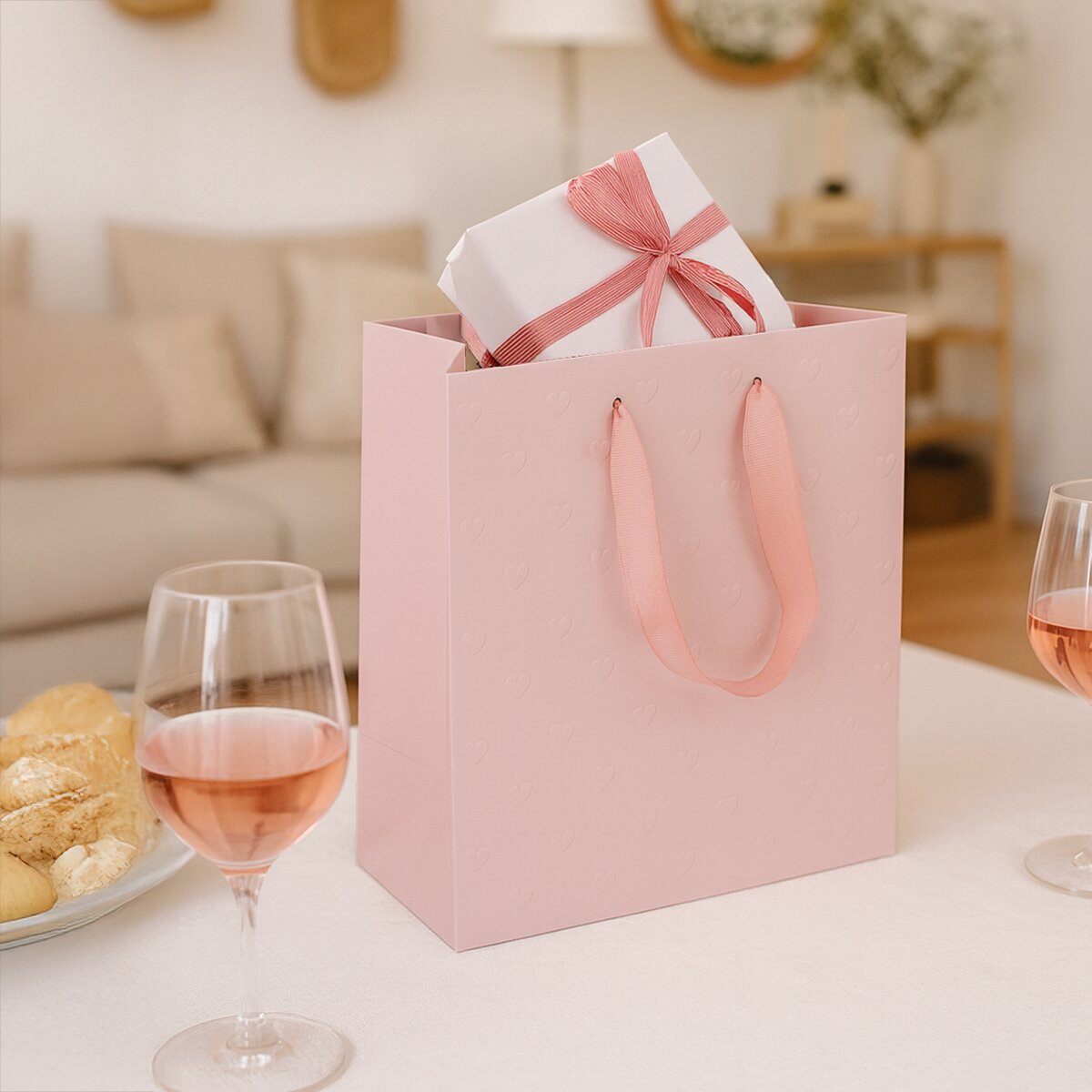 Kód produktu 823123Papírová dárková taška o rozměrech 26x12x32 cm v růžovém provedení.