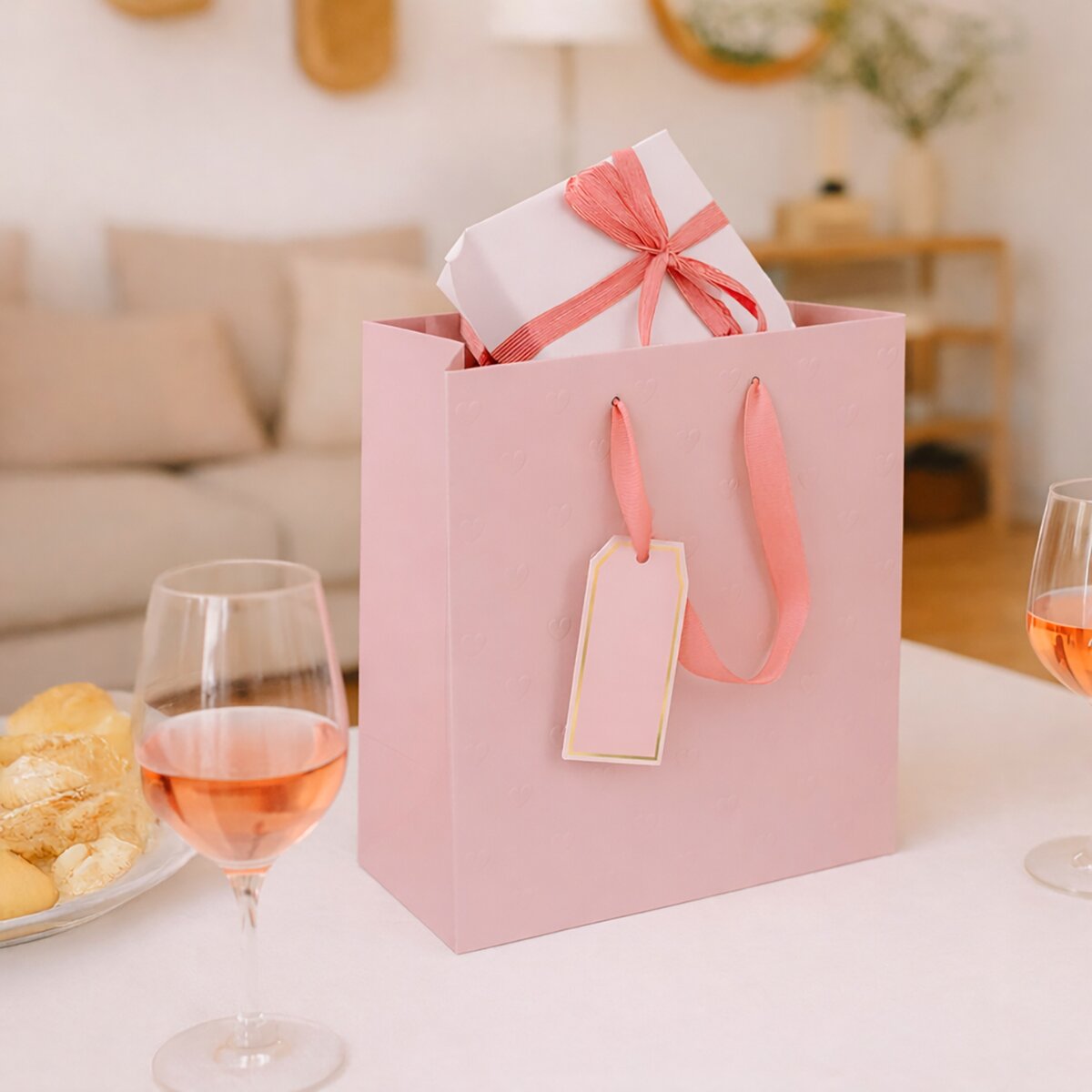 Je doplněná jmenovkou, kam lze napsat věnování nebo jméno obdarovaného. S jejím přenášením pomohou držadla z růžové polyesterové stužky.