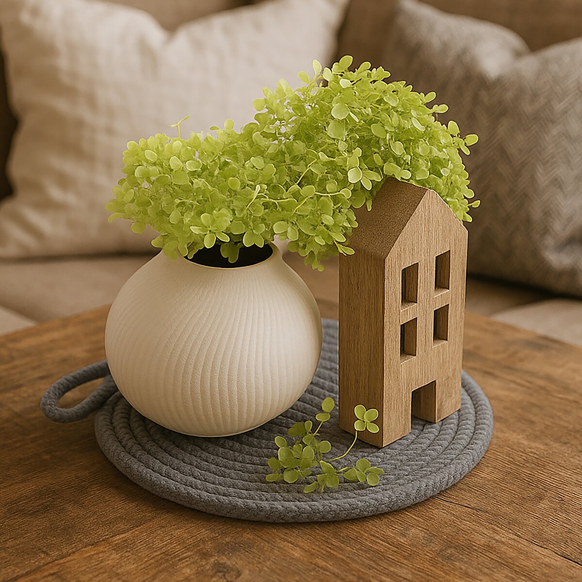 Kód produktu 121580Šedá bavlněná podložka o průměru cca 21 cm se hodí jako místo k uložení dochucovadel, dekorací, vazby ze živých nebo sušených květin apod. Může být položena doprostřed jídelního nebo konderenčního stolu či na komodu.