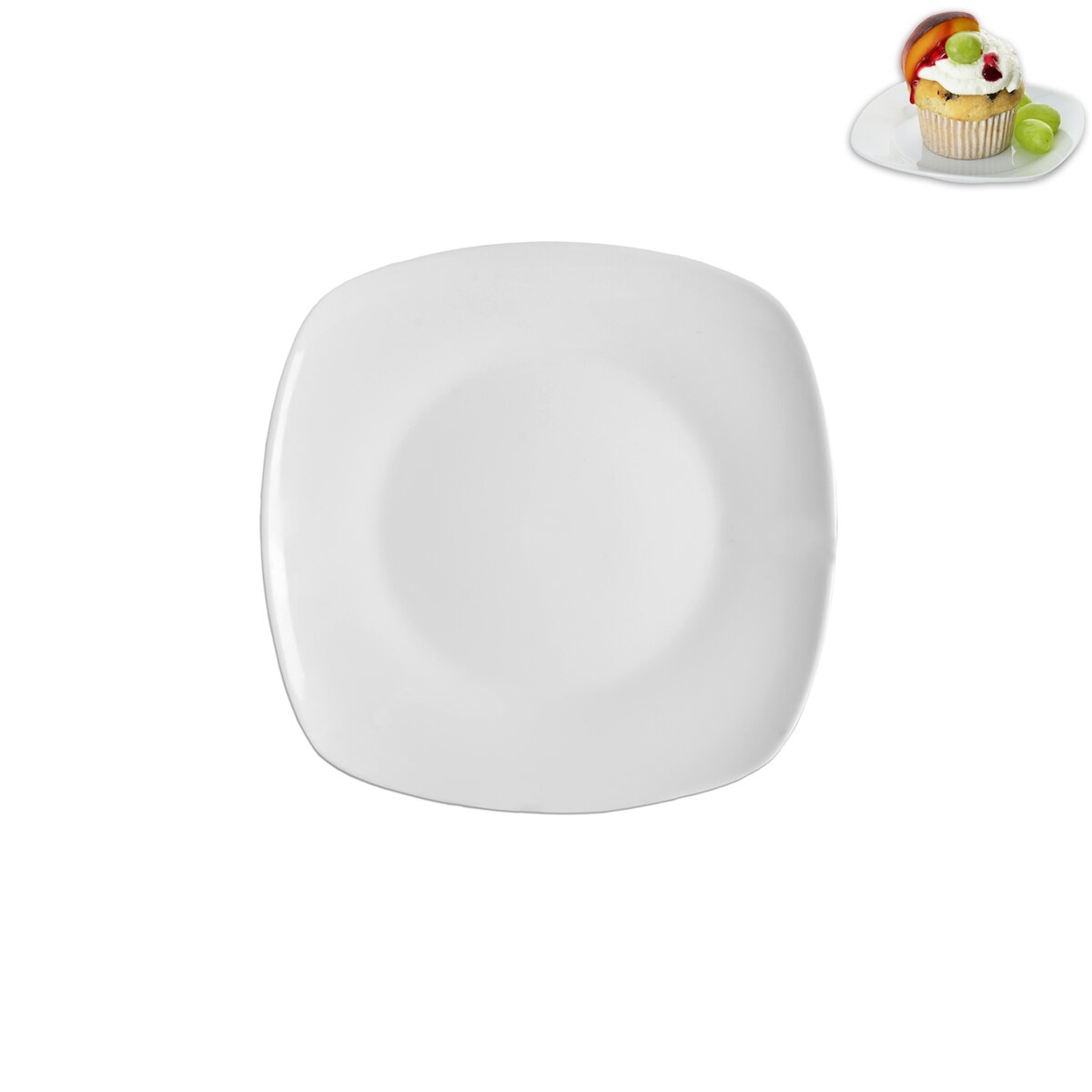 Desertní malý talíř na servírování zákusku, chlebíčku, dortíku,... Materiál: keramika. Bílá barva, hranatý tvar. Rozměry: 14,5x14,5 cm. Vhodné do myčky na nádobí, ale z důvodu použití mycích prostředků do myčky na nádobí může dojít k rychlejšímu opotřebení materiálu, není důvodem reklamace.