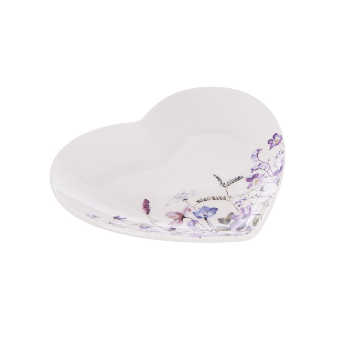 Kód produktu 129168Dezertní porcelánový talíř LOUKA má tvar srdíčka a je zdoben něžným dekorem lučních květin.
