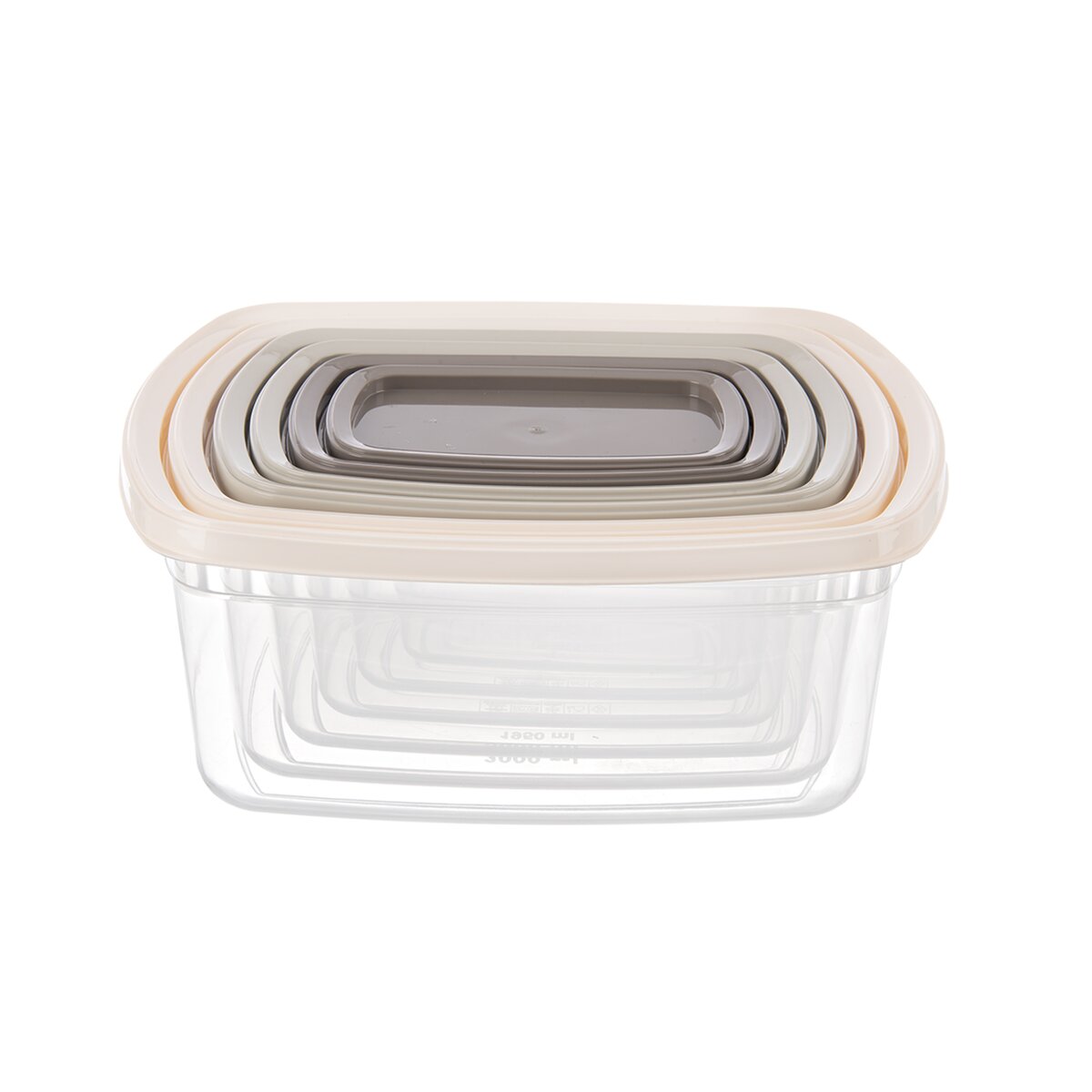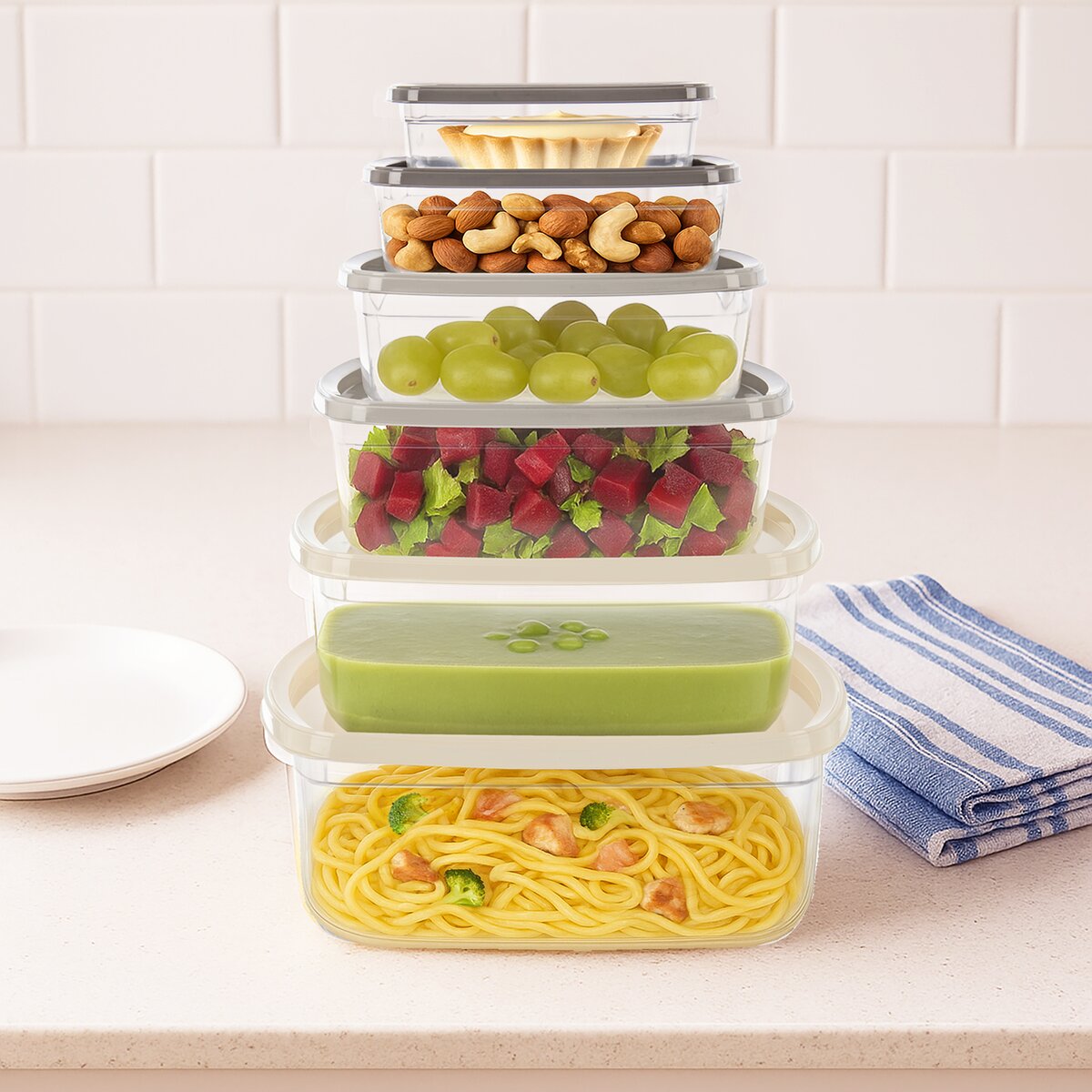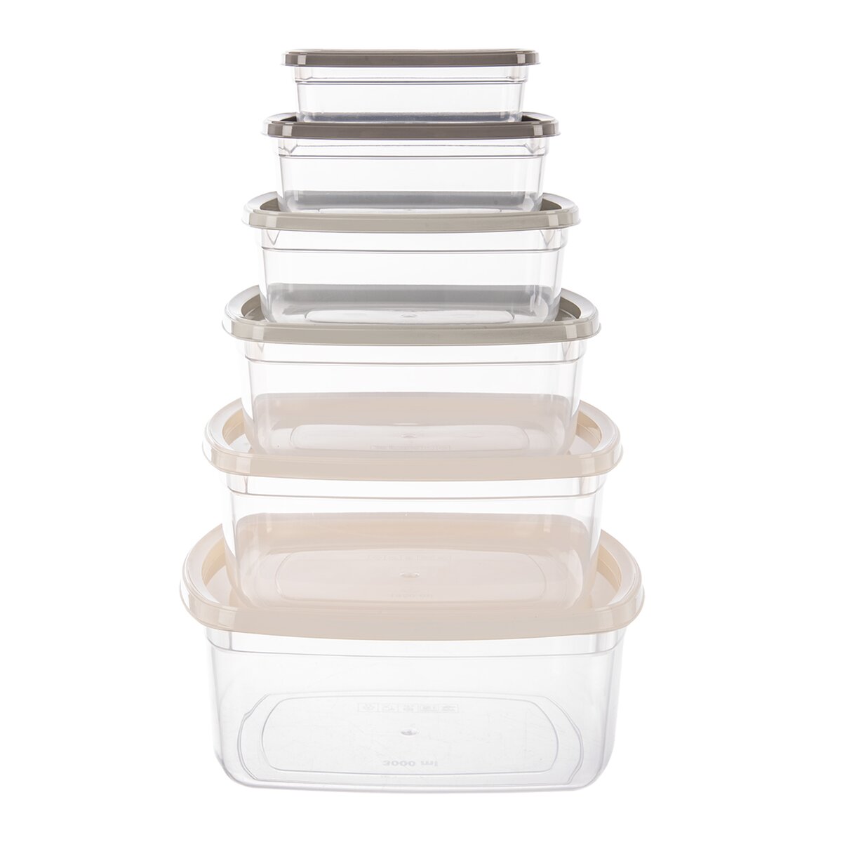 Kód produktu 154509Sada 6 transparentních obdélníkových dóz s víčky se hodí k uložení surovin pro vaření a pečení, k převážení hotových jídel do práce, na výlety, k uložený drobností v domácnosti. Mají objem 0,225 l, 0,43 l, 0,75 l, 1,22 l, 1,95 l a 3 l.
