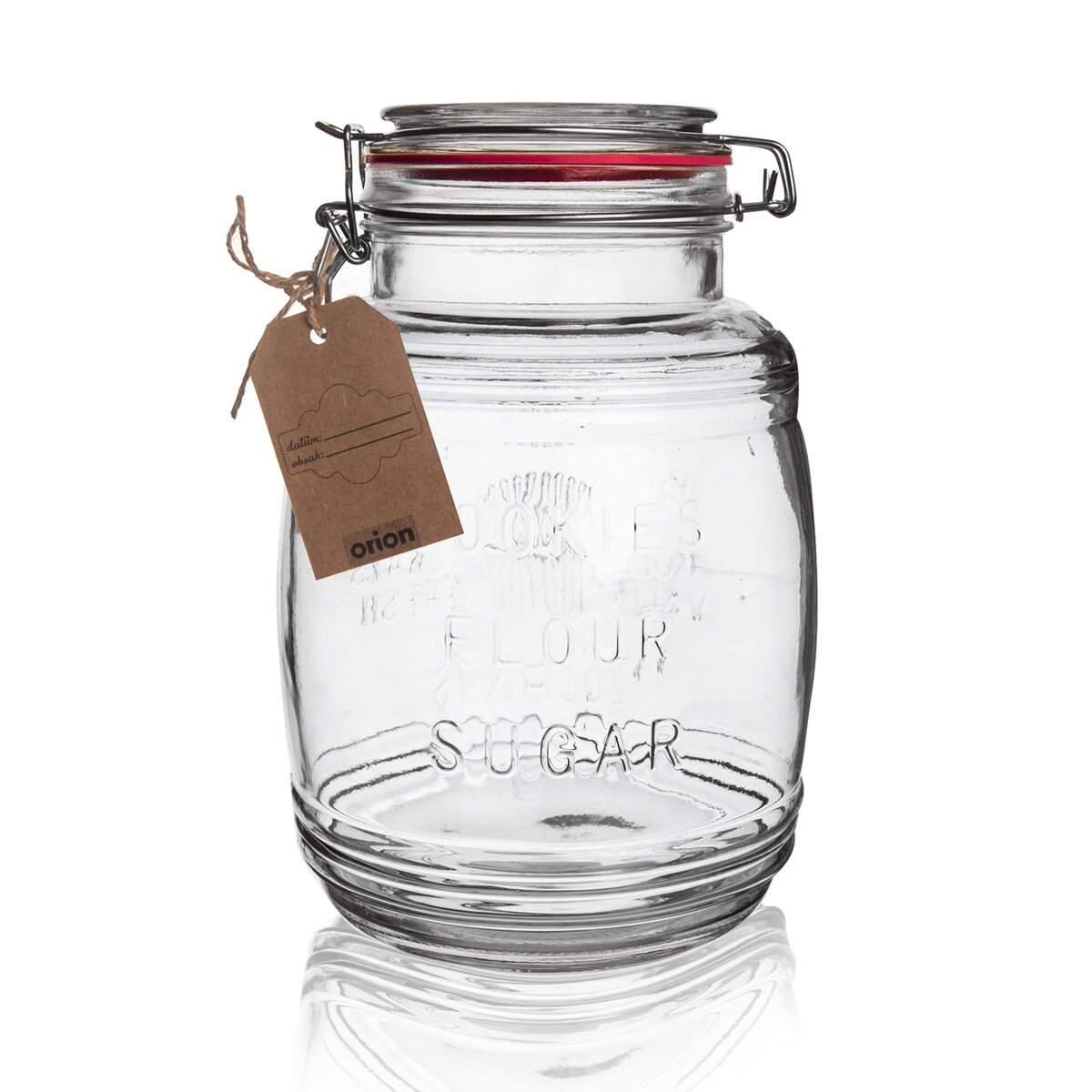 Kód produktu 126469Nakládací skleněná dóza VIOLA o objemu 2,3 l soudkového tvaru, s kovovým patentem a silikonovým těsněním.