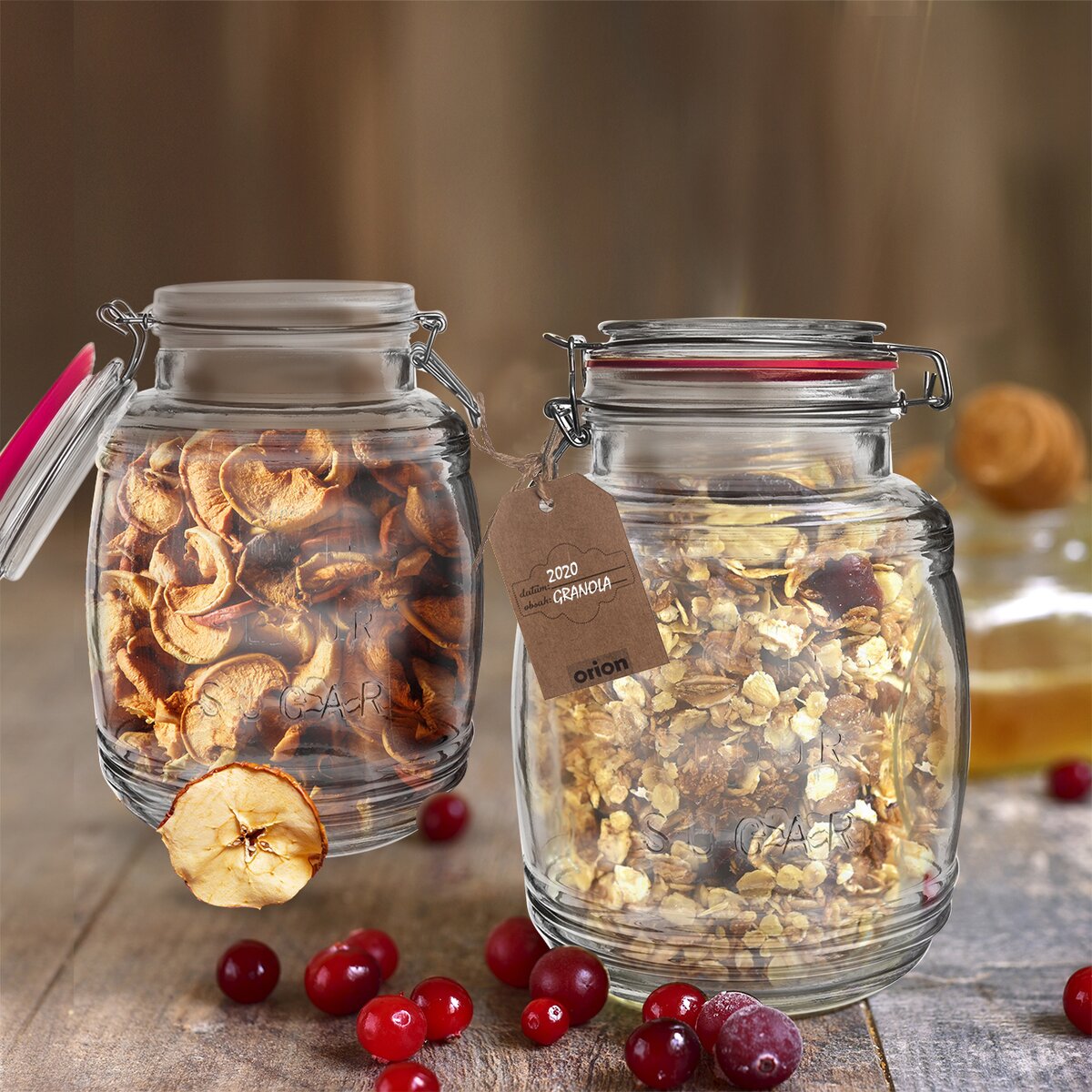Velkou dózu VIOLA z čirého skla a zajímavým plastickým dekorem můžete využít na nakládané utopence, zeleninu nebo sýry. Dále se hodí k uskladnění potravin jako rýže, vloček, mouky, cukru nebo těstovin.