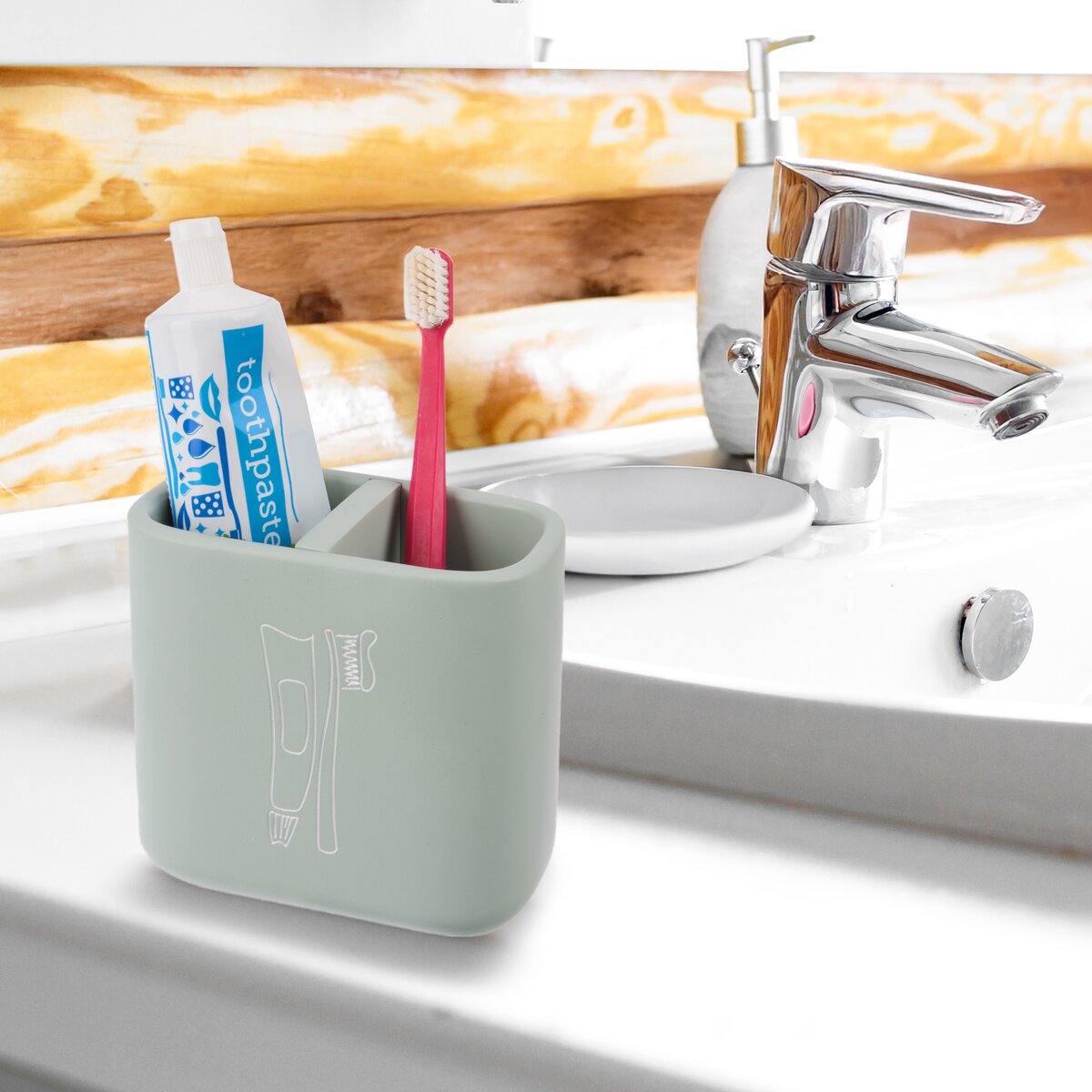Kód produktu 531347Držák na zubní kartáčky a pastu GREENISH je vyroben z polyresinu v tlumené zelené barvě. Má dvě oddělení s vyjímatelnou středovou příčkou.