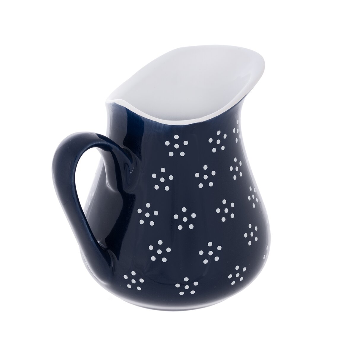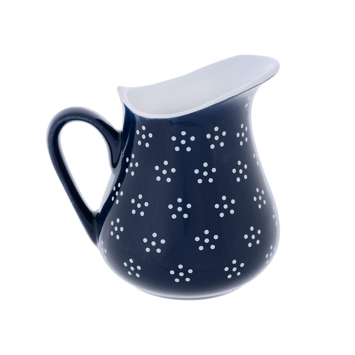 Kód produktu 126688Stylový keramický modrý džbánek s bílými kvítky na mléko, limonádu nebo jako originální váza.