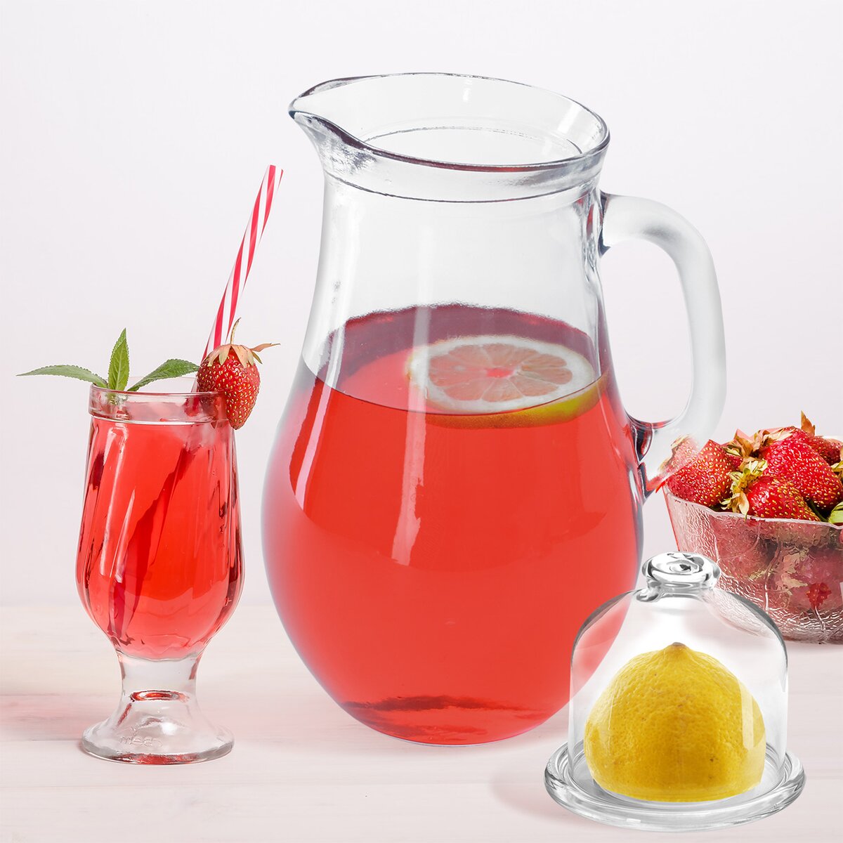 Oblý stabilní džbán o celkovém objemu 1,1 l, s viditelnou mírou 1 l a výlevkou pro pohodlné a přesné nalévání nápojů do sklenic a pohárů. Má univerzální použití, je opatřen masivním uchem, takže manipulace s ním je jednoduchá.