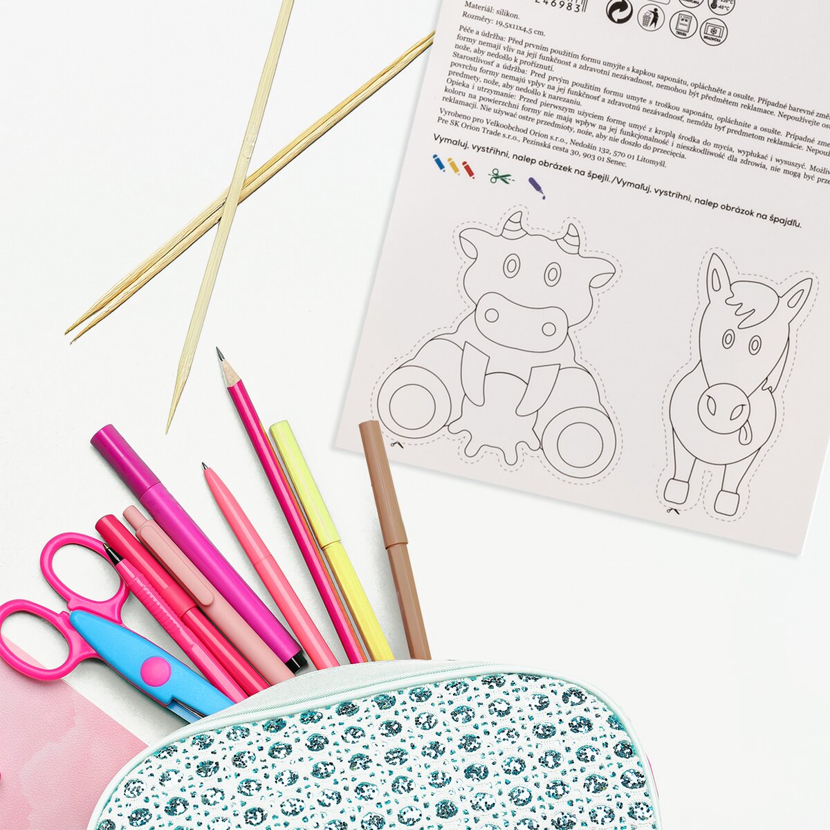 Orion tip: na zadní straně papírové karty, na které je forma připevněna, jsou pro děti připraveny obrázky zvířátek, které si mohou dle vlastní fantazie vybarvit, vystřihnout, nalepit na špejli a hrát s nimi divadlo. Vhodné pro děti od 3 let.