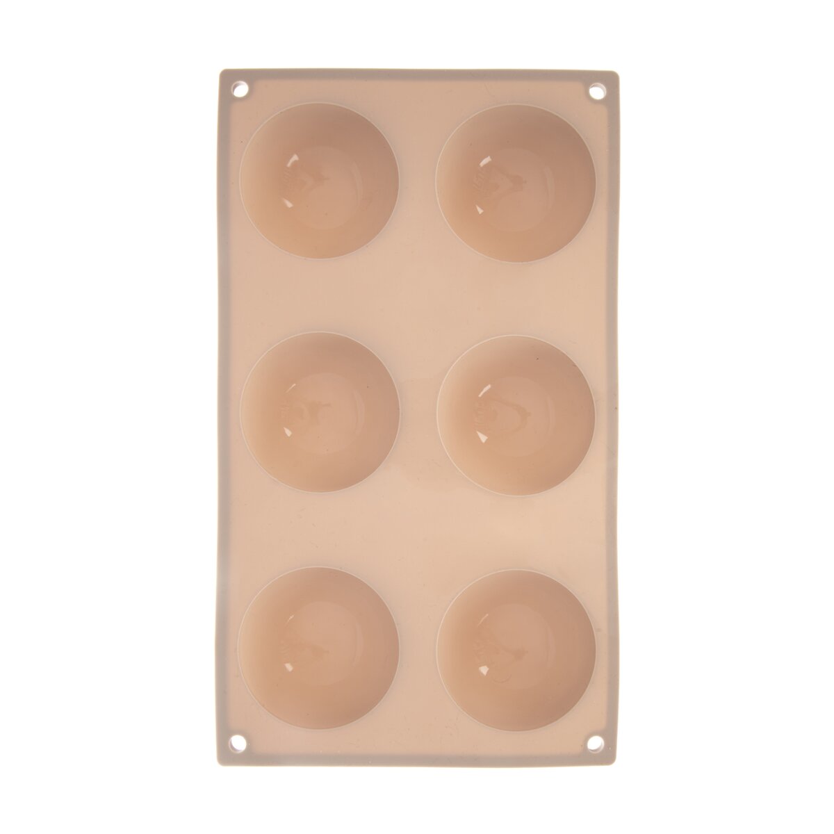 Kód produktu 154428Nepřilnavá béžová silikonová forma je určena pro rychlé a stejnoměrné pečení 6 ks dortíků, ale i k přípravě smetanových dezertů nebo čokoládového fondantu. Jedna polokoule má průměr 6,5 cm.
