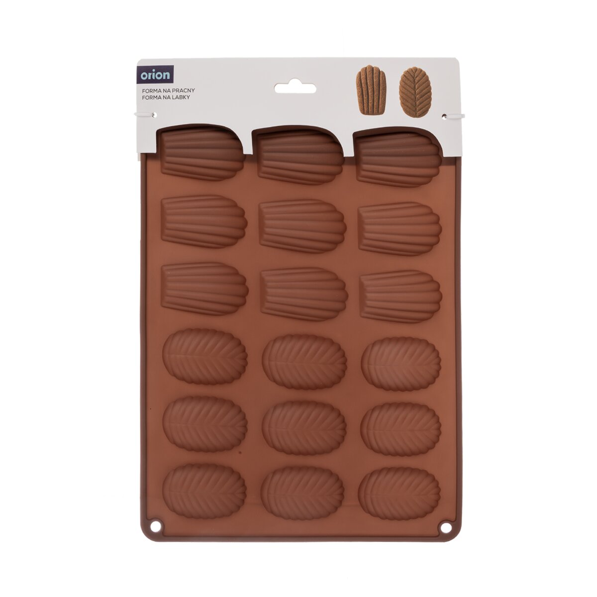 Kód produktu 154432Nepřilnavá hnědá silikonová forma umožní naráz upéct 18 ks pracinek ve tvaru rohlíčků a oválků.