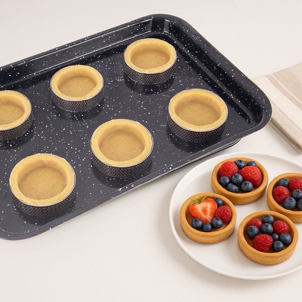 Formička – ráfek z nerezové oceli slouží k pečení dokonale vytvarovaných korpusů tartaletek. Zajišťuje rovné, ostré hrany, které dodávají výslednému pečivu profesionální vzhled. Díky pevné konstrukci výborně drží tvar těsta během pečení. Perforovaný povrch formy umožňuje rovnoměrné propečení korpusu díky efektivnímu odvodu páry.