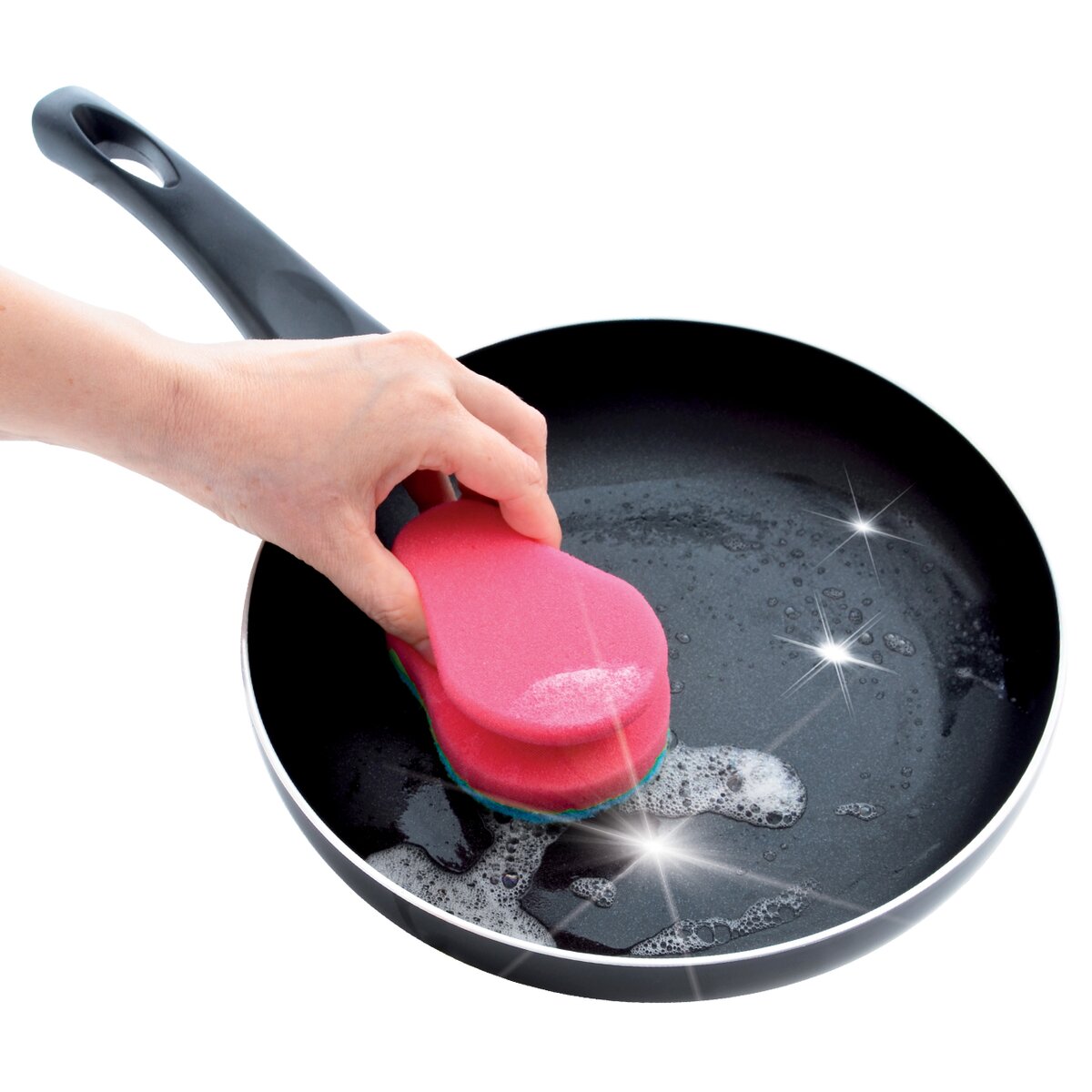 Hodí se nejen k mytí nádobí, ale i k čištění lesklých povrchů, teflonu či sklokeramické desky. Je speciálně tvarovaná nejen pro snadnější uchopení, ale i pro ochranu vašich nehtů.