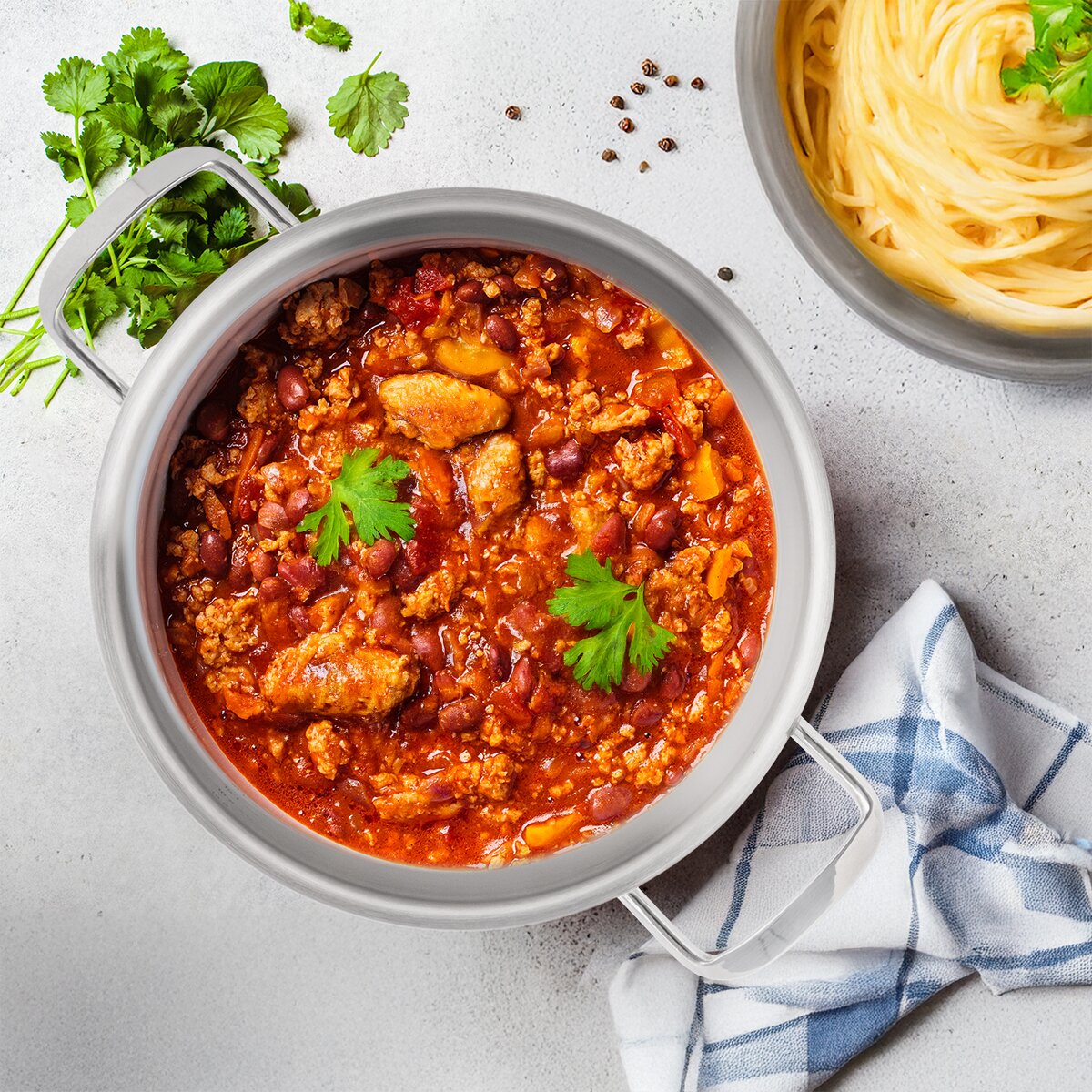 Materiál hrnce tvoří nerezová ocel 304, sendvičové dno je z hliníku a nerezové oceli, poklice je skleněná s nerezovým okrajem a nerezovým úchytem upevněným šrouby se silikonovými podložkami.