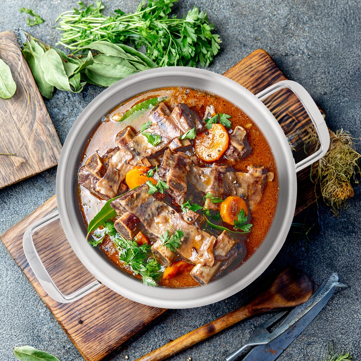 Hrnec je vhodný pro všechny typy sporáků včetně indukce a lze jej použít i v troubě, přičemž s poklicí je doporučená maximální teplota 200 °C. Nádobí lze používat k fritování, napařování či vaření s minimálním množstvím tuku, aniž by docházelo ke ztrátě vitamínů a minerálů v potravinách. Leštěný vnitřní i vnější povrch hrnce zabraňuje usazování nečistot a usnadňuje údržbu, zatímco sendvičové dno s termoakumulačními vlastnostmi zajišťuje rovnoměrné rozvádění tepla a úsporné vaření.