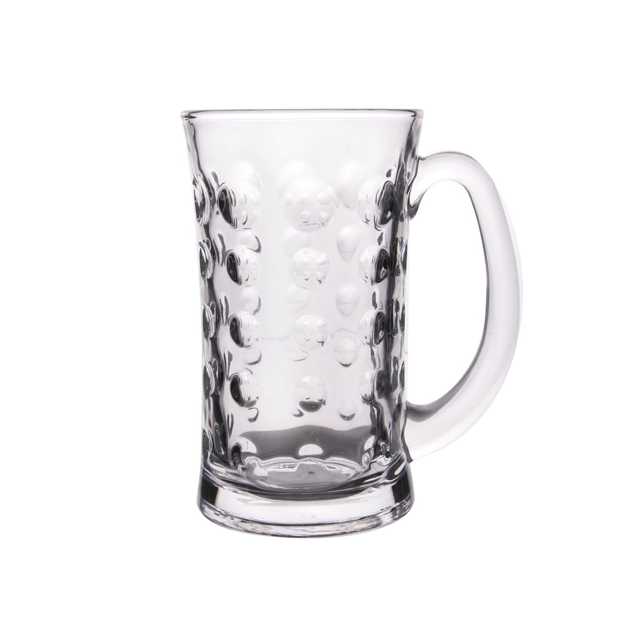 Hrnek s uchem. Materiál: sklo. Rozměry: objem 0,4 l, pr. 8 cm, v. 13,5 cm.