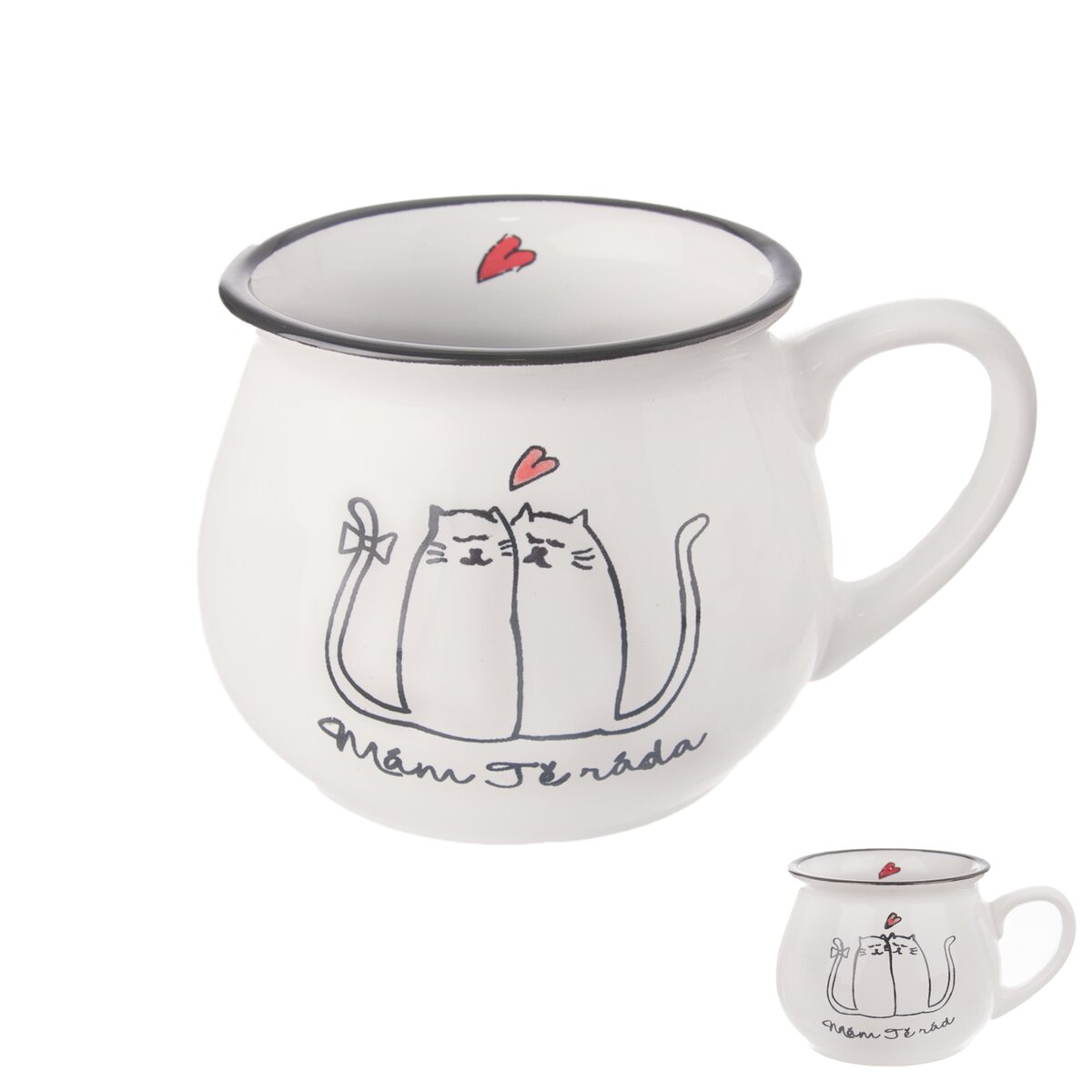 Kód produktu 128816Keramický hrnek o objemu 0,32 l s dekorem dvou koček a nápisem MÁM TĚ RÁD/A.