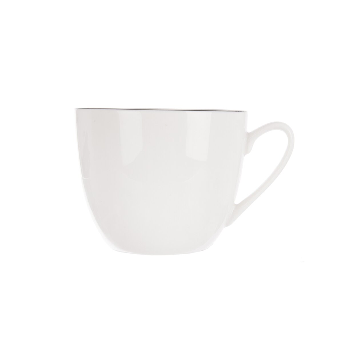 Elegantní porcelánový hrnek má hladký bílý povrch a je zdoben jemnou černou linkou po okraji, která podtrhuje jeho vytříbený vzhled. Ideální k podávání cappuccina, lunga nebo silnějšího flat white. Prostorné ucho usnadní přenášení a popíjení oblíbeného nápoje. Lze jej doplnit podšálkem.