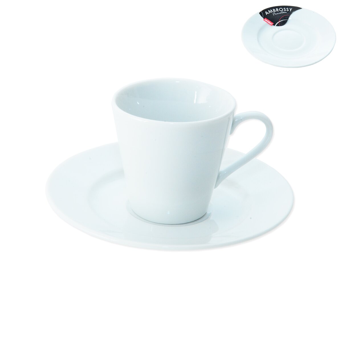 Kód produktu 125384Bílý porcelánový šálek MONA na espresso o objemu 90 ml s ladícím podšálkem.