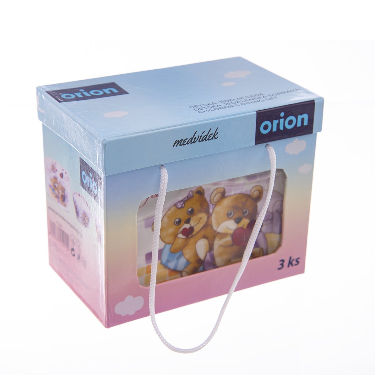 Kód produktu 112343Sada jídelní porcelánová s dekorem MEDVÍDKŮ potěší vaše děti. Sada obsahuje hrneček, mističku a mělký hranatý talířek. Dárkové balení. Materiál: porcelán. Rozměry: hrneček - 0,2 l, pr. 7 cm, v. 8 cm, mistička – 12x12x5,5 cm, talířek – 17x14,5 cm. Nádobí lze mýt v myčce na nádobí a používat v mikrovlnné troubě.