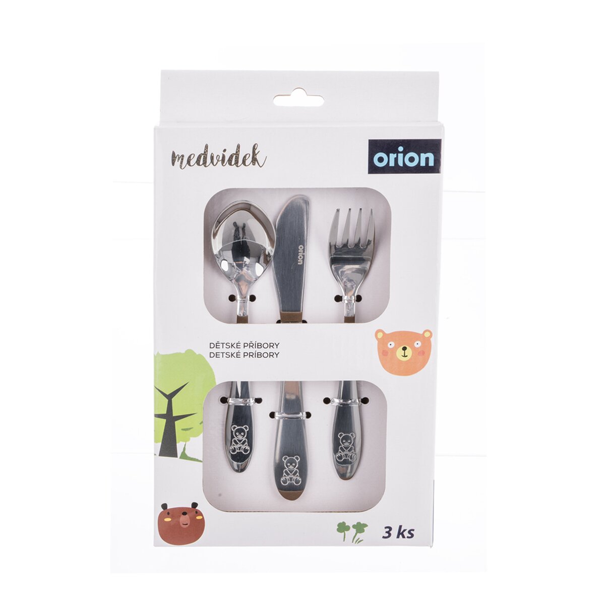 Kód produktu 143682Set dětských nerezových příborů s rytým motivem medvídka obsahuje lžíci, vidličku a nůž a je určen pro každodenní používání.