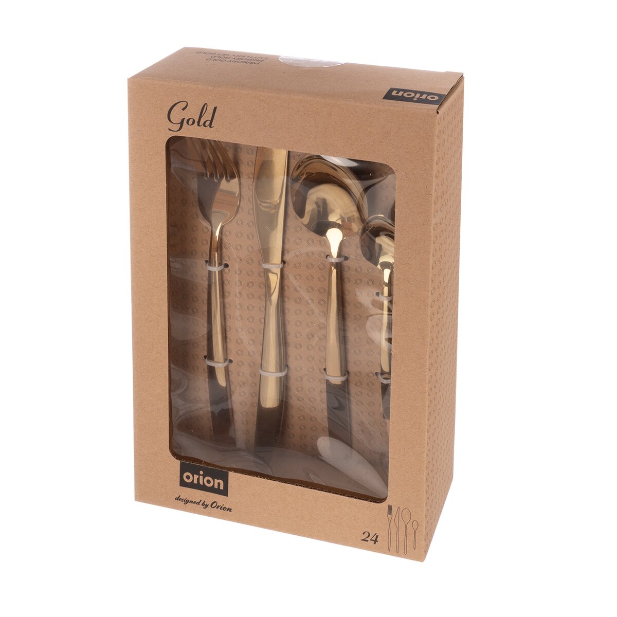 Kód produktu 154201Kvalitní nerezové příbory GOLD s povrchovou úpravou ve zlatém odstínu, s elegantně prohnutým nožem, jsou vhodné pro každodenní používání i slavnostní události. Jsou velmi atraktivní a přinášejí punc luxusu.