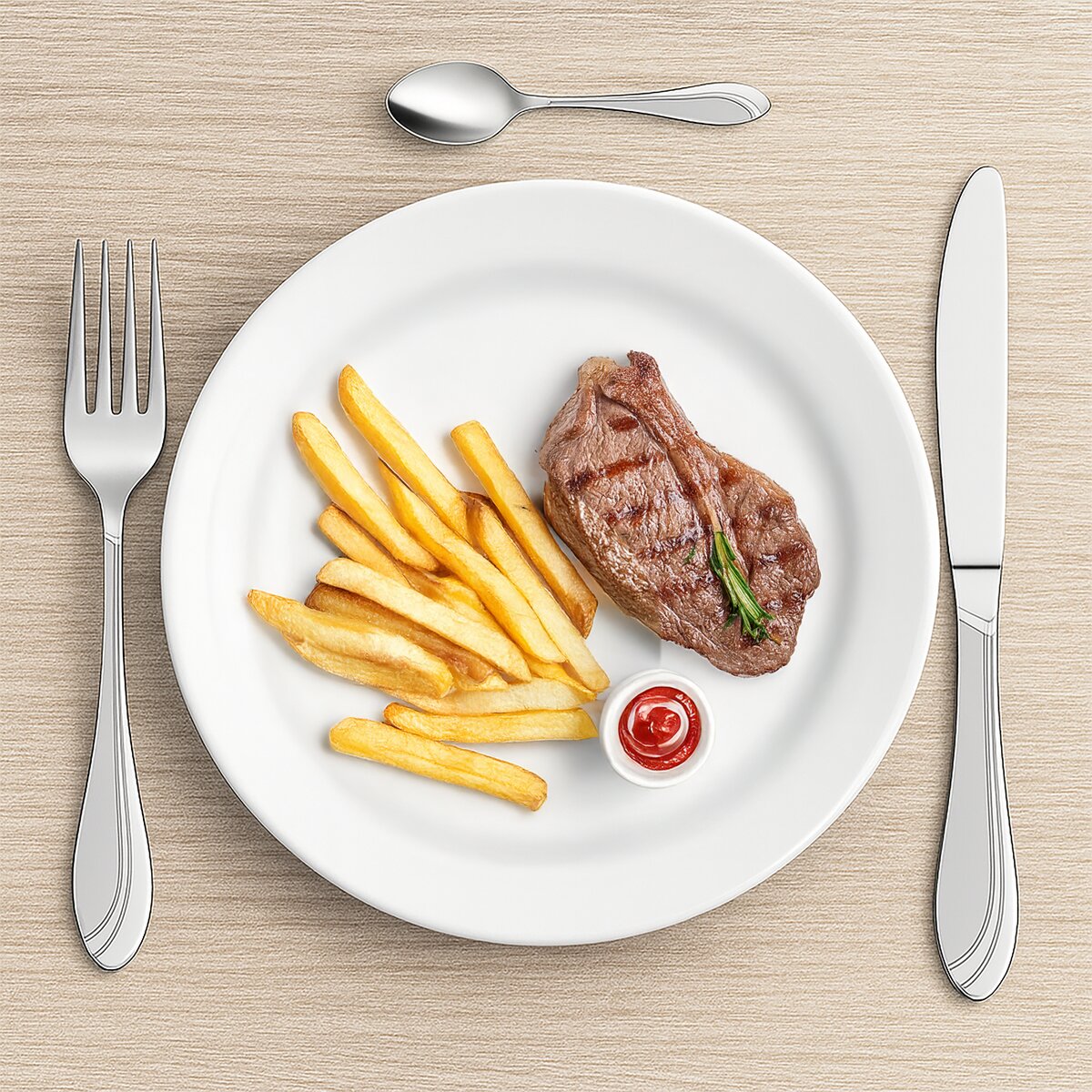 Elegantní lesklé nerezové příbory s protlačovaným vzorem na rukojeti a pískovanou matnou plochou mají klasický tvar a zužující se krček. Příjemně se drží v ruce.