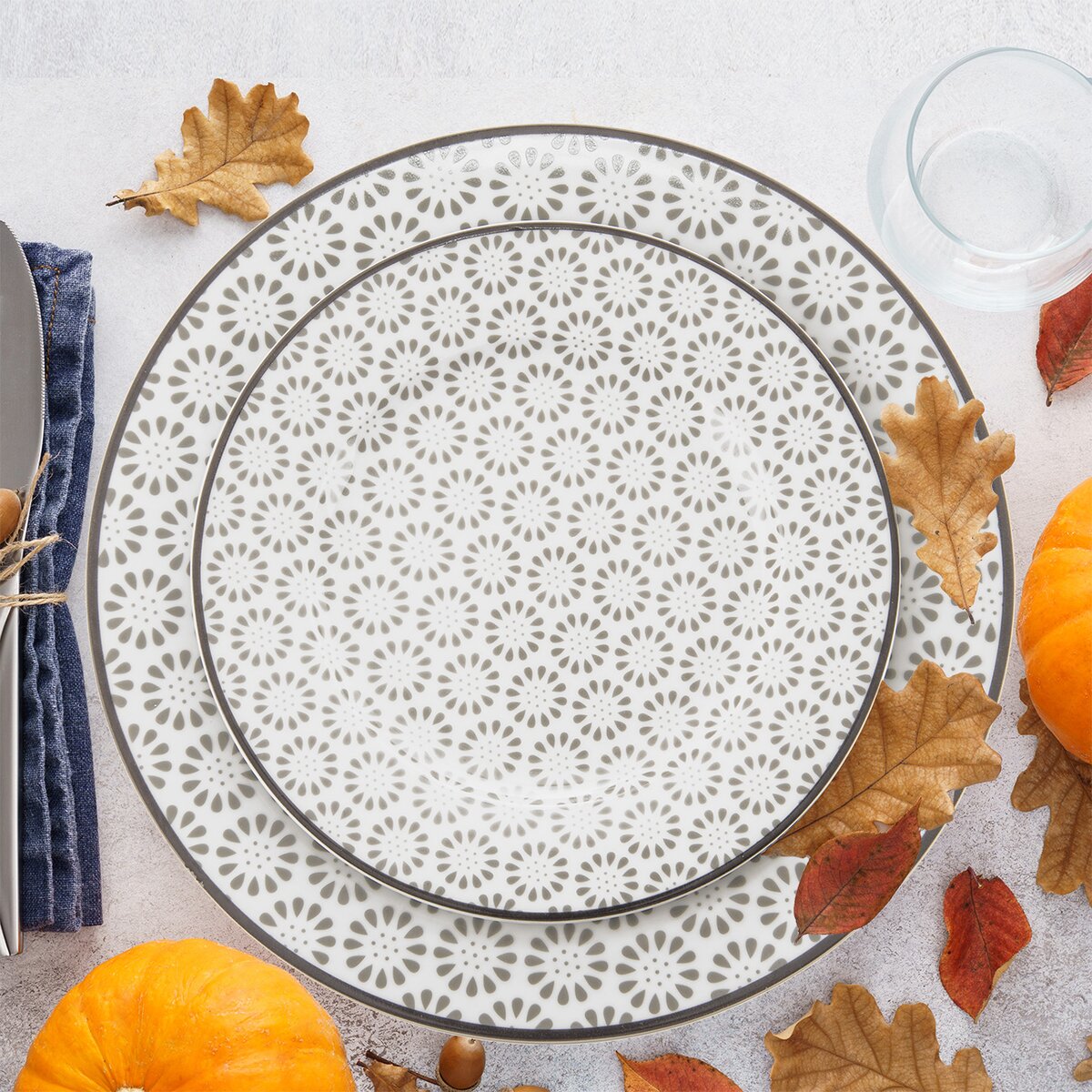 Více informacíOriginální, nadčasový potisk drobných šedobéžových květů na bílém podkladu zdobí talíře z 18dílné sady ORNATE. Porcelánové talíře promění každodenní stolování, jak při běžném rodinném obědě tak i při slavnostních příležitostech. Snesou i ohřev v mikrovlnné troubě.