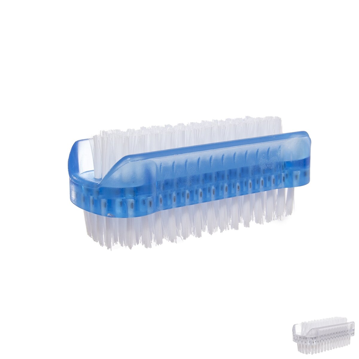 Kód produktu 710442Plastový oboustranný kartáč o rozměrech 8×3×4 cm, určený k mytí rukou, koupelnových a kuchyňských ploch i k čištění zeleniny po sklizni.