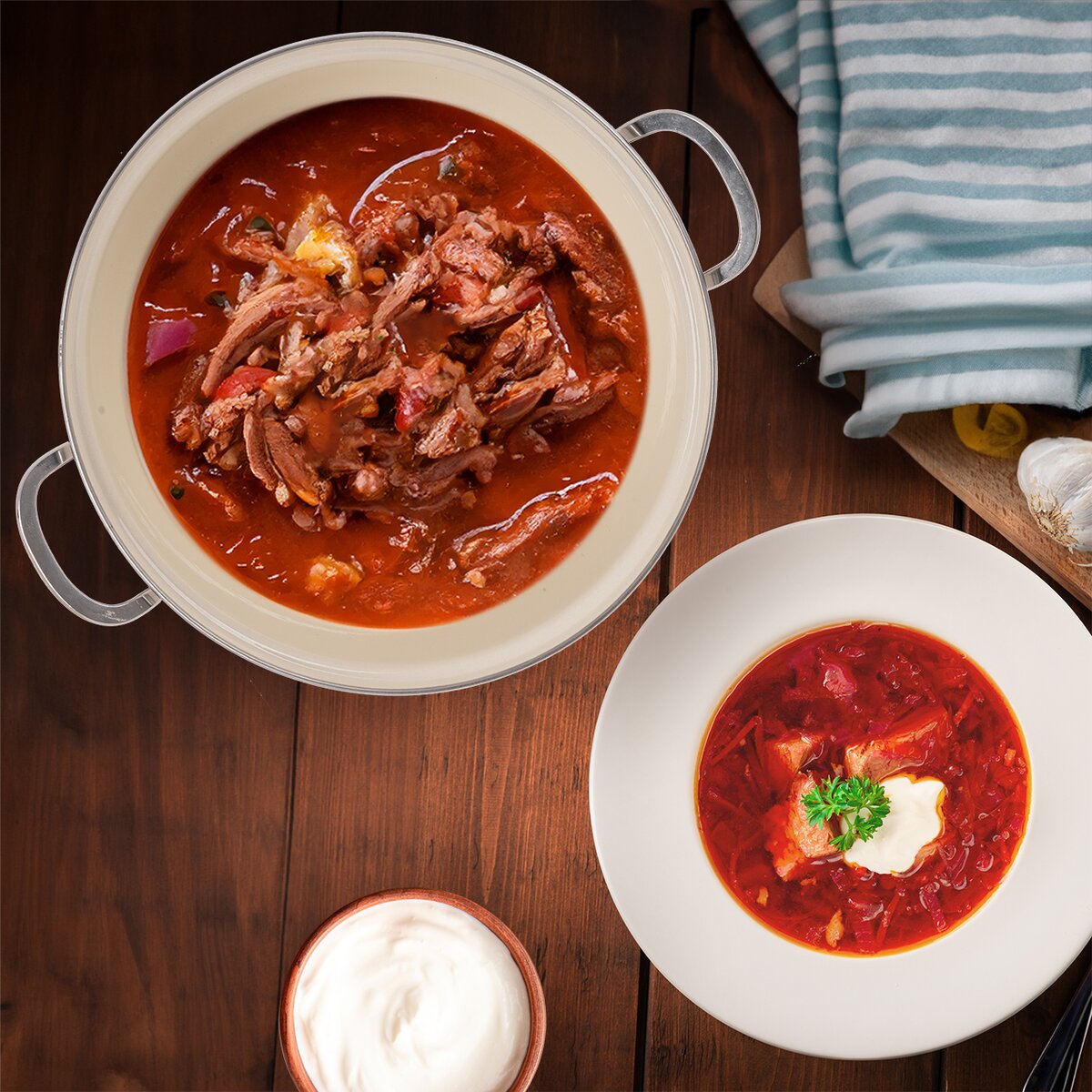 Kastrol s nerezovým lemem můžete využít pro přípravu masových, zeleninových i sladkých pokrmů, k vaření polévek či omáček.