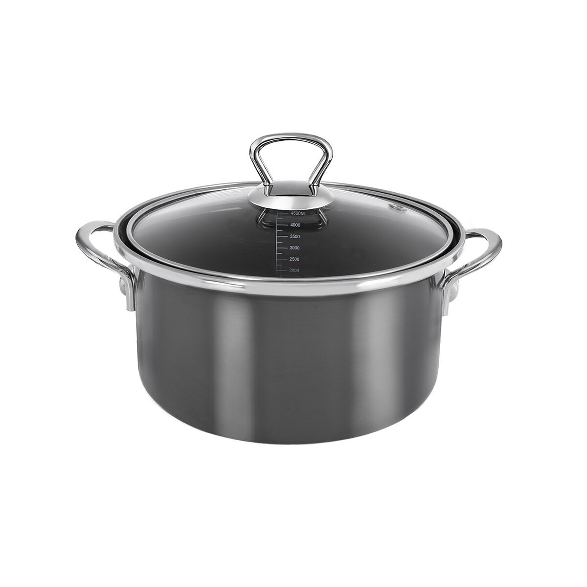 Uvnitř najdete přehlednou stupnici, která usnadňuje odměření tekutiny po 0,5 litrech (od 0,5 l do 4,5 l). Vnější průměr kastrolu je 26 cm, vnitřní 24 cm a i s držadly má 32,5 cm.
