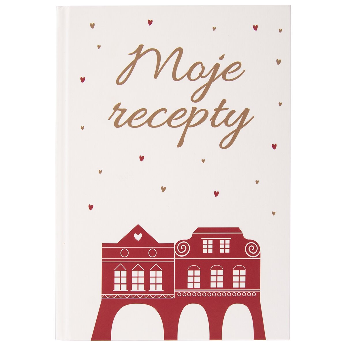Kód produktu 741179Designová kniha na recepty z kolekce DOMKY v kombinaci světlé barvy a červeno-zlatého potisku, o rozměru 14,5x21,5 cm. Má 180 předtištěných stran, kam si lze zaznamenávat zajímavé recepty.