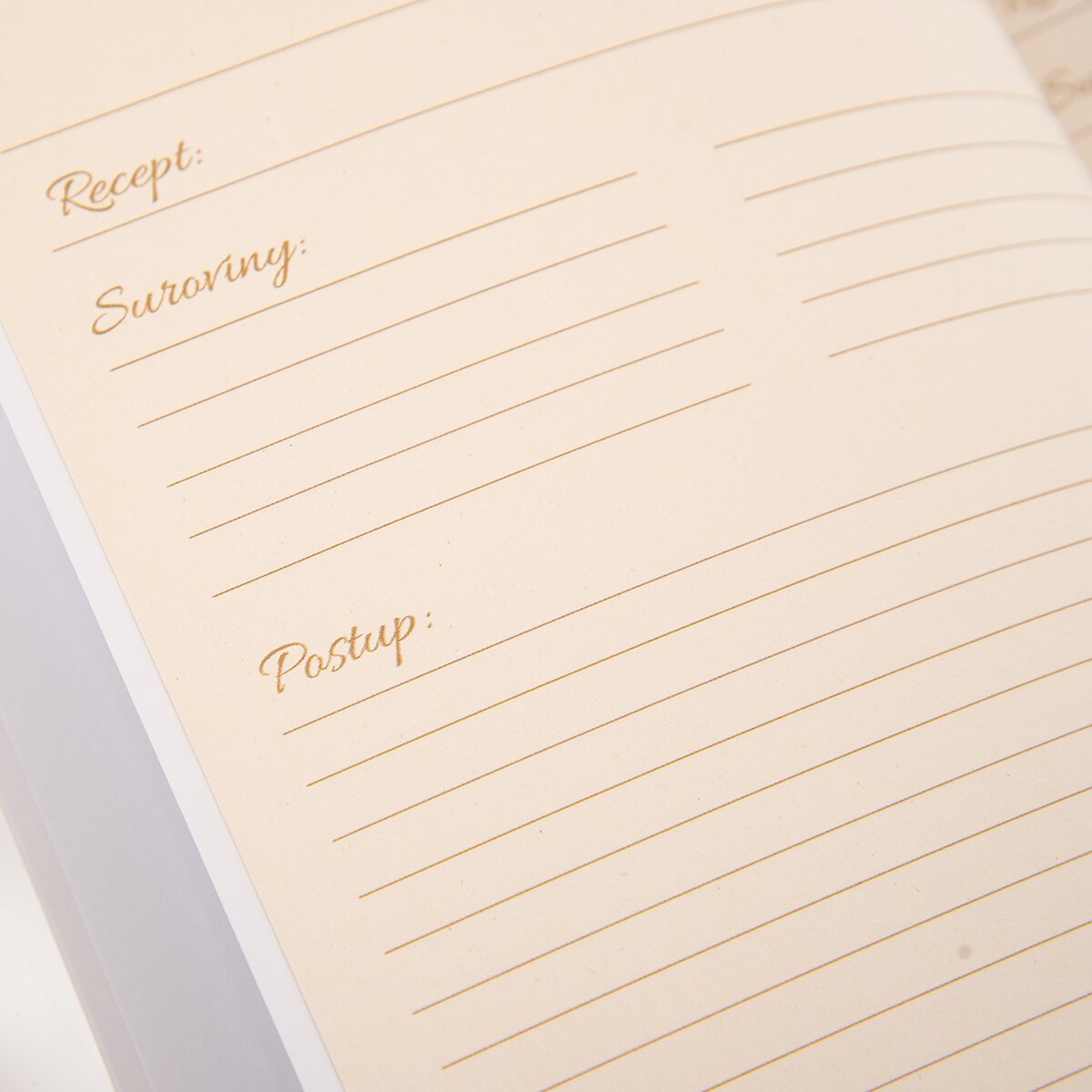 Má 180 předtištěných stran, kam lze psát název receptu, suroviny i postup přípravy. Bude tak krásným dárkem pro všechny, kdo mají rádi podobu ručně psaných kuchařek, nebo jako odkaz pro dceru nebo vnučku, která má za sebou první pokusy při vaření a pečení.