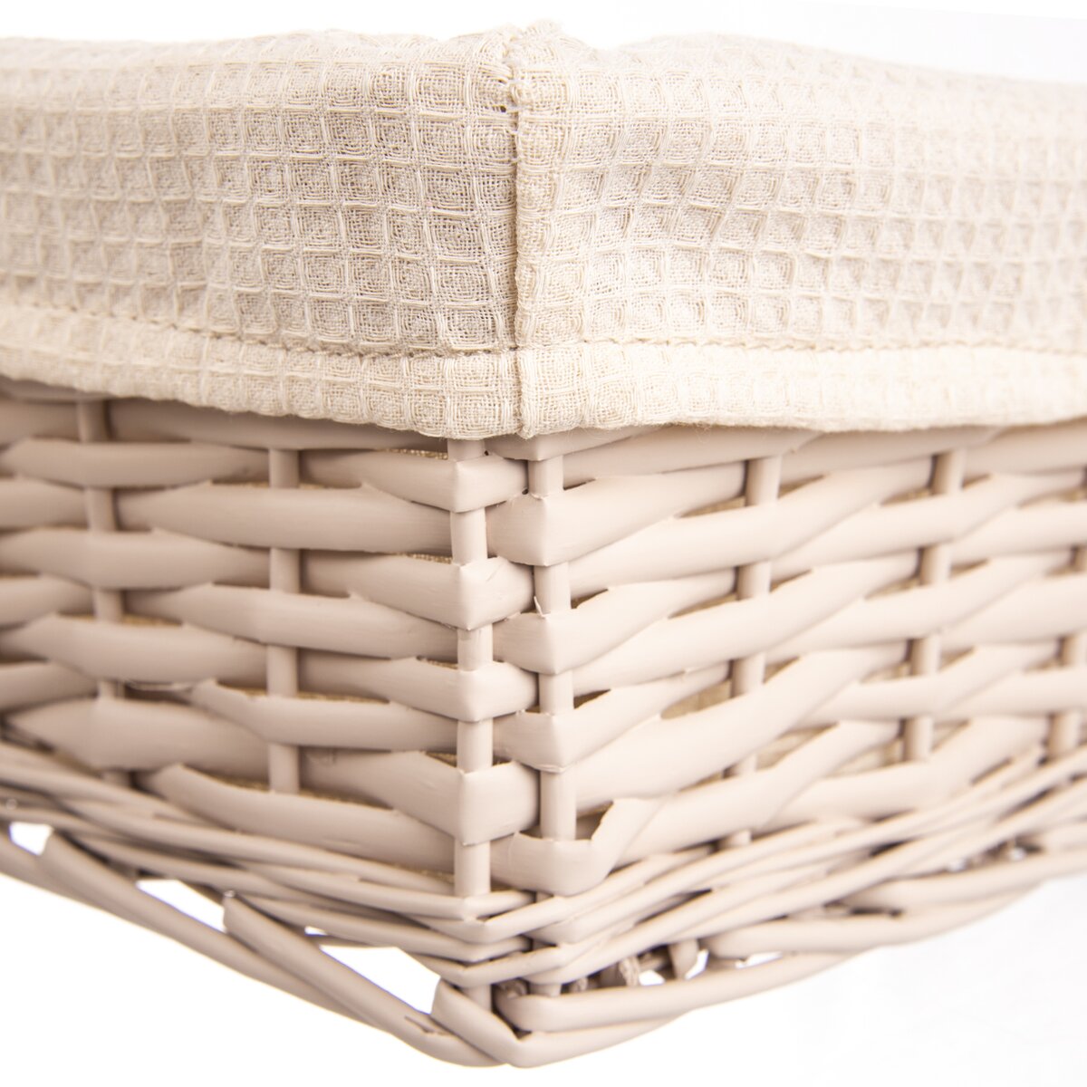 Prádelní koš uloží drobné prádlo, ale stejně tak do něj můžete uložit jiné věci v domácnosti… Bude skvělým designovým doplňkem. Textilie uvnitř je odnímatelná, lze ji prát v pračce. V nabídce několik velikostí i barev. Materiál: vrbové proutí, textilie – 65 % bavlna, 35 % polyester. Rozměry: 40x30x16,5 cm.