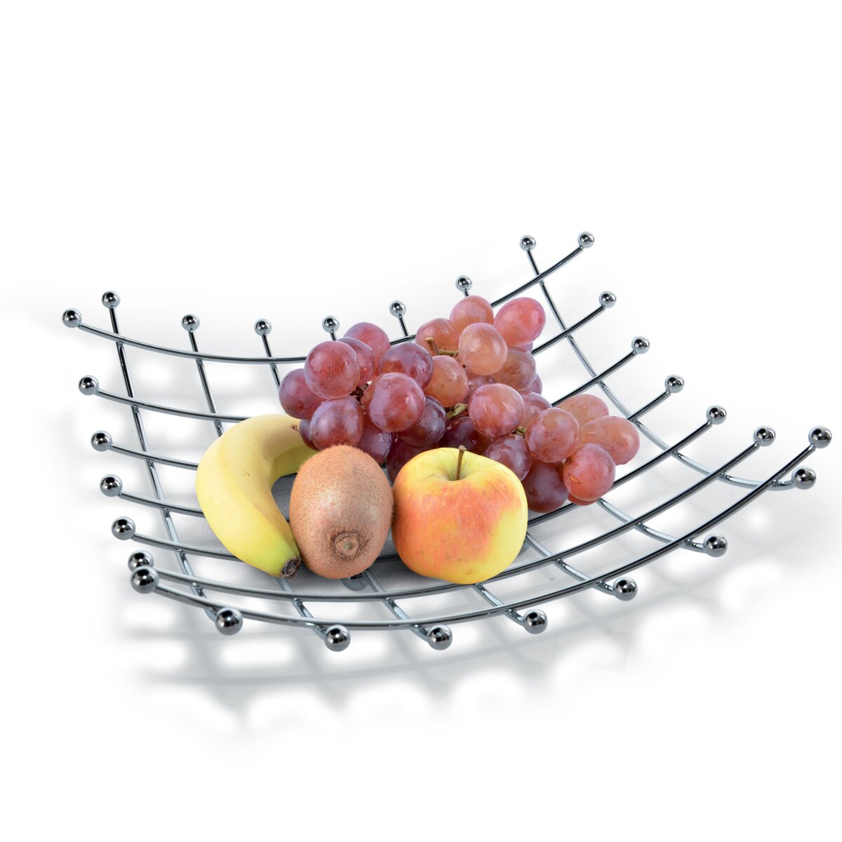 Košík na ovoce v moderním provedení se hodí do každé kuchyně. Materiál: pochromovaný drát. Rozměry: 28x28x9 cm.