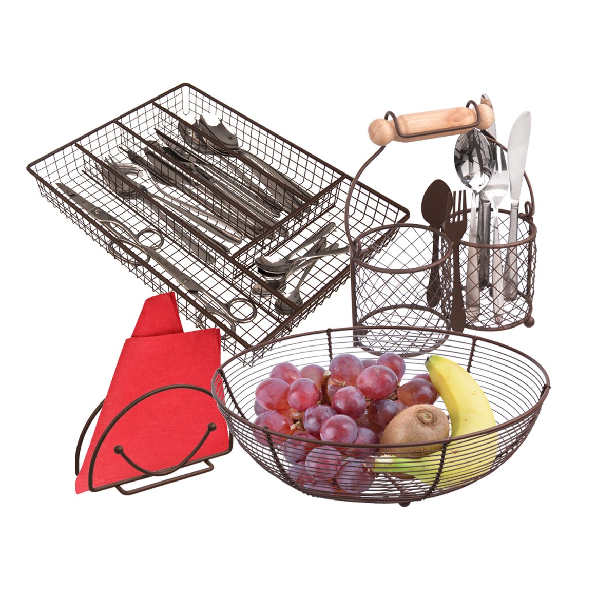 Košík na ovoce bude vypadat skvěle v moderní i klasické kuchyni. Materiál: drát s povrchovou úpravou. Rozměry: pr. 25 cm, v. 9,5 cm.
