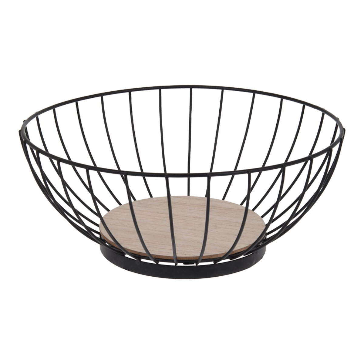 Kód produktu 540595Černý kovový košík RADKA o průměru 28 cm, opatřený dřevěnou základnou, je určený např. k uložení ovoce.