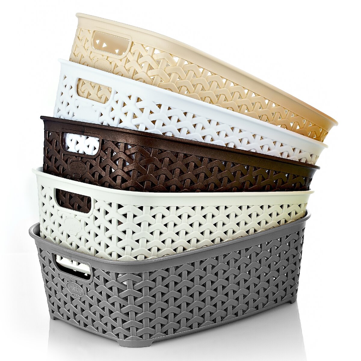 Kód produktu 730265Barevný plastový košík RATAN hranatého tvaru a se dvěma uchy. Jeho rozměry jsou 26×19×9 cm.
