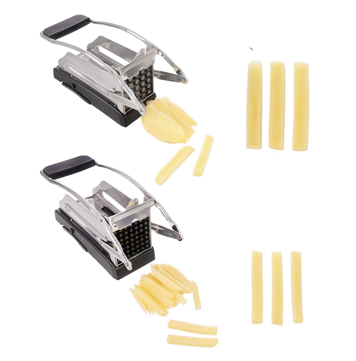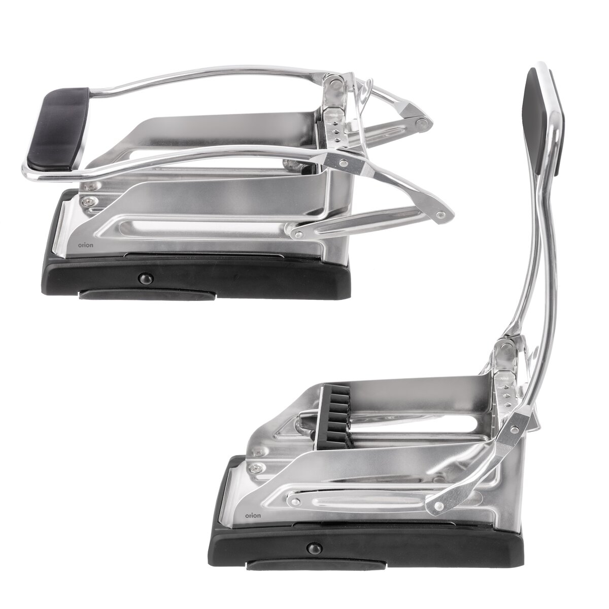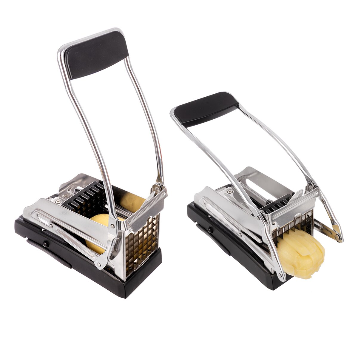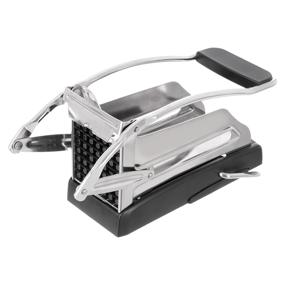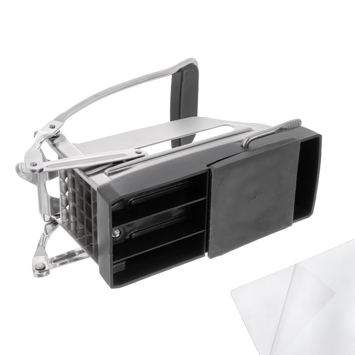 Použití je velmi snadné – vložíte zeleninu do přístroje a pomocí páky ji protlačíte ostrou mřížkou. Během chvilky tak získáte rovnoměrné hranolky bez zbytečné námahy. V balení najdete dvě vyměnitelné mřížky s různou velikostí otvorů (1,3 × 1,3 cm a 0,9 × 0,9 cm), takže si můžete vybrat, jak silné hranolky si přejete. Pro stabilní použití je kráječ opatřen spodní přísavkou, která pevně drží na hladkém povrchu. V případě, že pracujete na méně hladké ploše, lze využít přiloženou PVC podložku, která přilnavost výrazně zlepší.