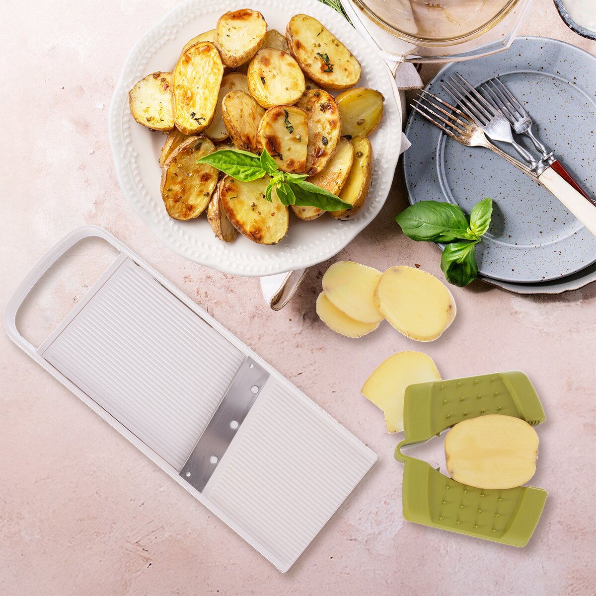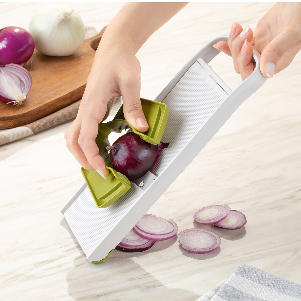 Více informacíKráječ typu mandolína, kdy se strouhaná potravina posunuje po ploše struhadla přes pevně usazenou ostrou čepel, je ideální k rychlému plátkování ovoce a zeleniny. Příprava gratinovaných brambor, bramborových lupínků, pečených plátků cukety či žampionů v troubě, krájení okurky na salát bude rychlé a jednoduché. Pohodlně nakrájíte i kolečka cibule na oblíbené smažené cibulové kroužky nebo restovanou cibuli, která si skvěle rozumí s grilovanou krkovicí.