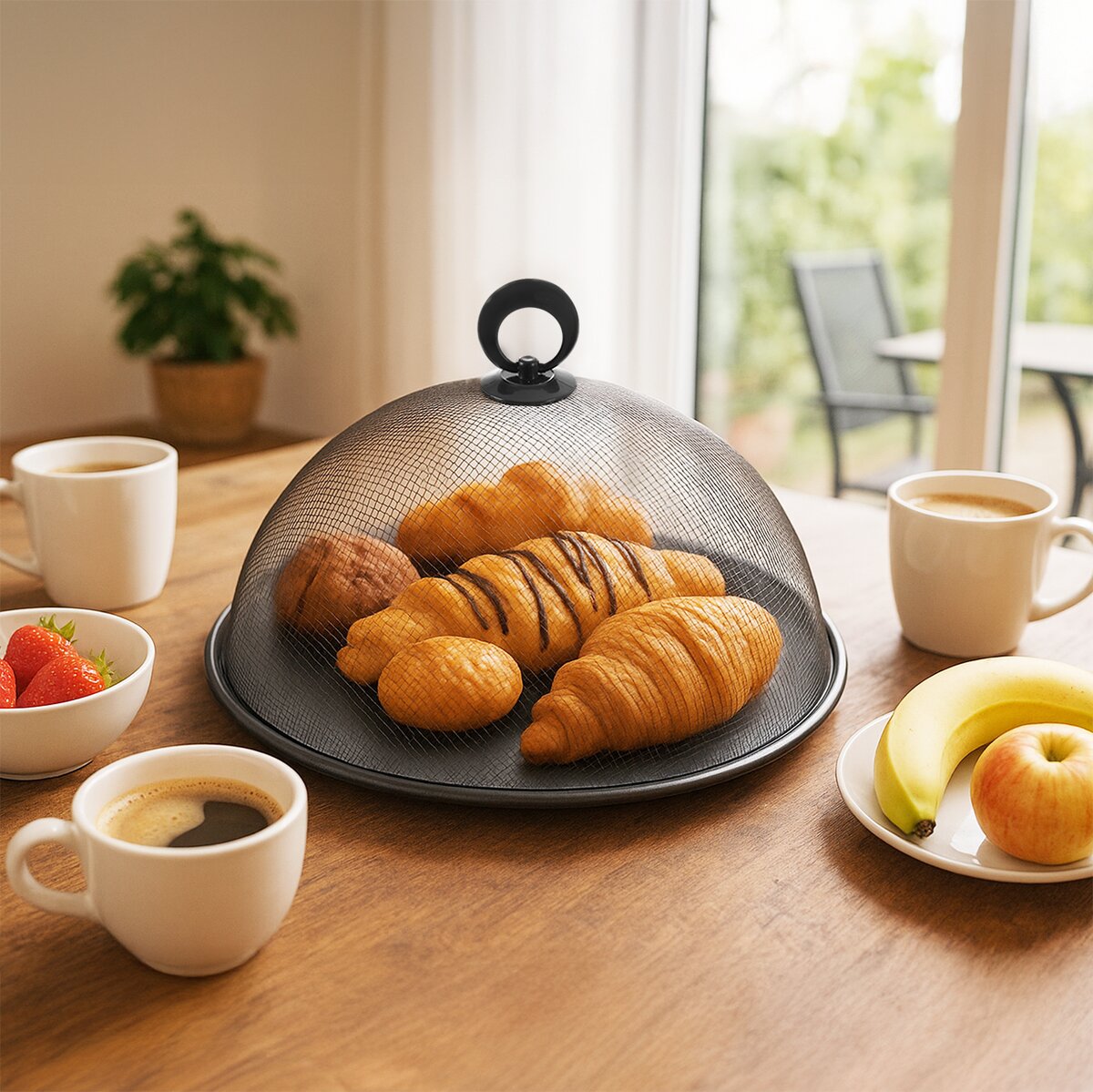 Kód produktu 830932Praktický kryt z kovové síťoviny chrání jídlo před dotěrným hmyzem jak doma, tak i na terase, zahradě, u grilu nebo bazónu.