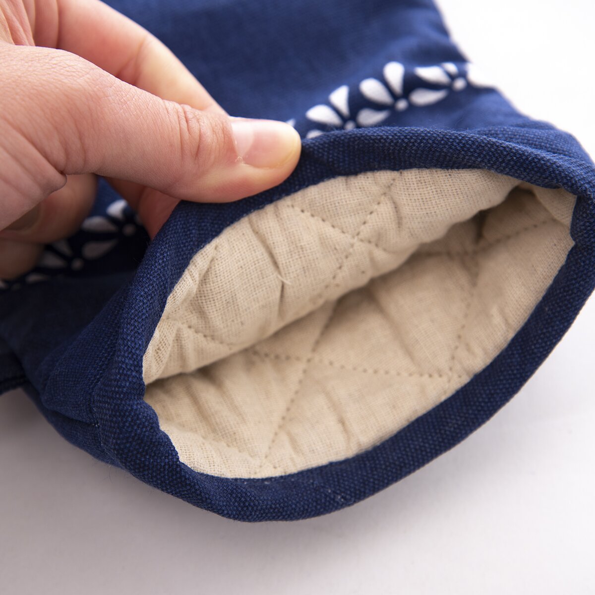 Kód produktu 152187Bavlněná kuchyňská rukavice inspirovaná technikou modrotisku, s poutkem pro zavěšení.
