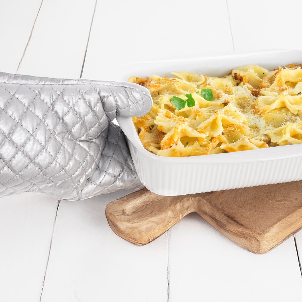 Více informacíKuchyňská chňapka je určena pro bezpečné použití v domácnosti, zejména při vaření, pečení, manipulaci s nádobím v troubě, na grilu nebo na plotně.